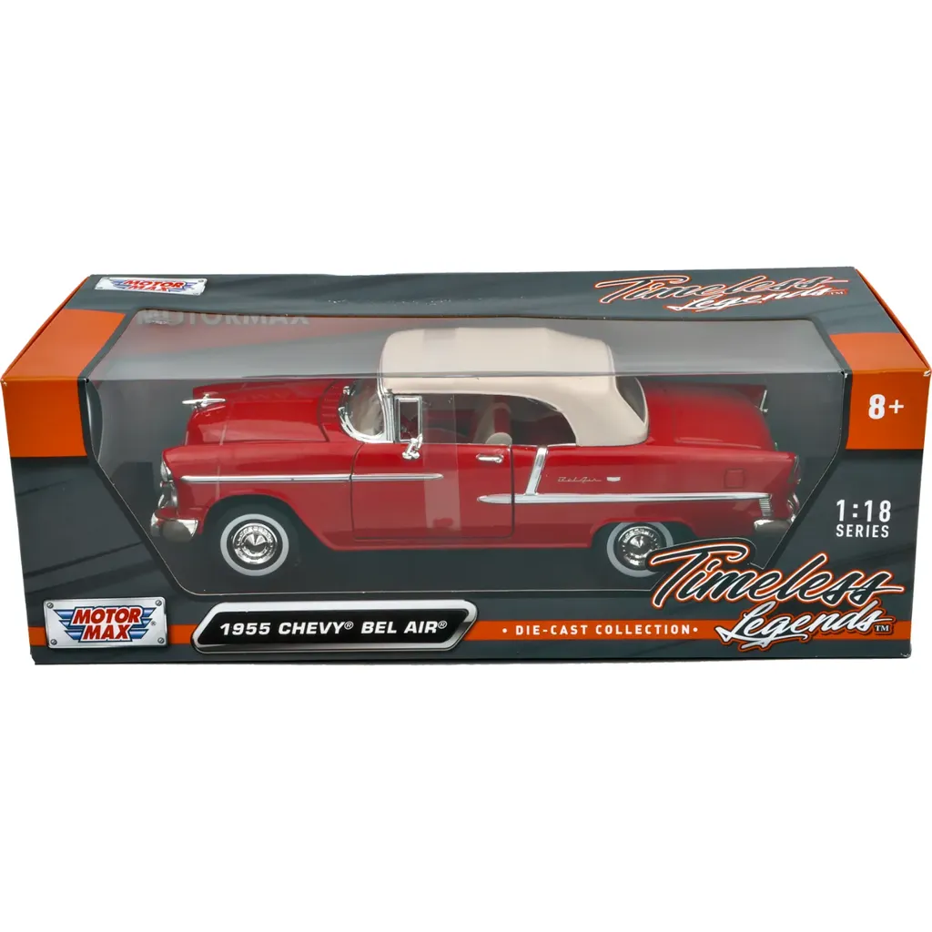 Rød 1955 Chevy Bel Air fra Motormax. Skala 1:18 (27,5 cm).