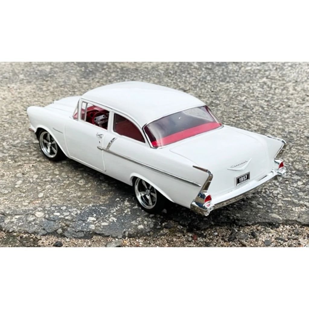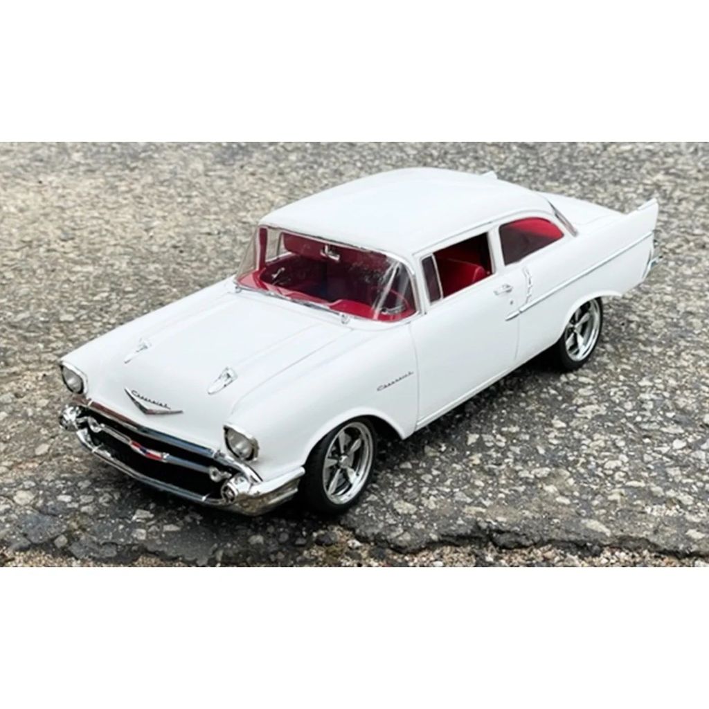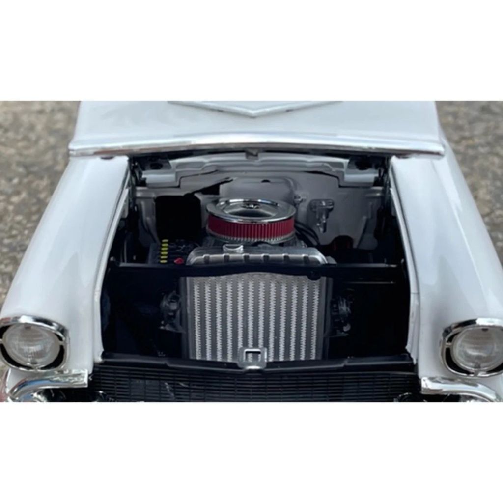 Hvid 1957 Chevrolet Bel Air 150 Restomod i skala 1:18 fra den amerikanske modelbilproducent ACME.