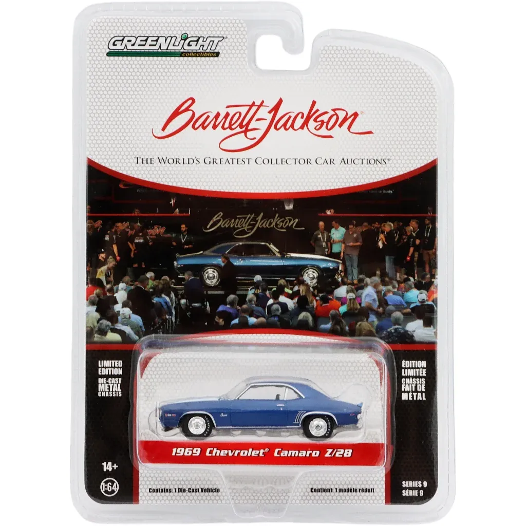 Blå Chevrolet Camaro Z/28, modelår 1969, fra GreenLight og Barrett-Jackson-serien.