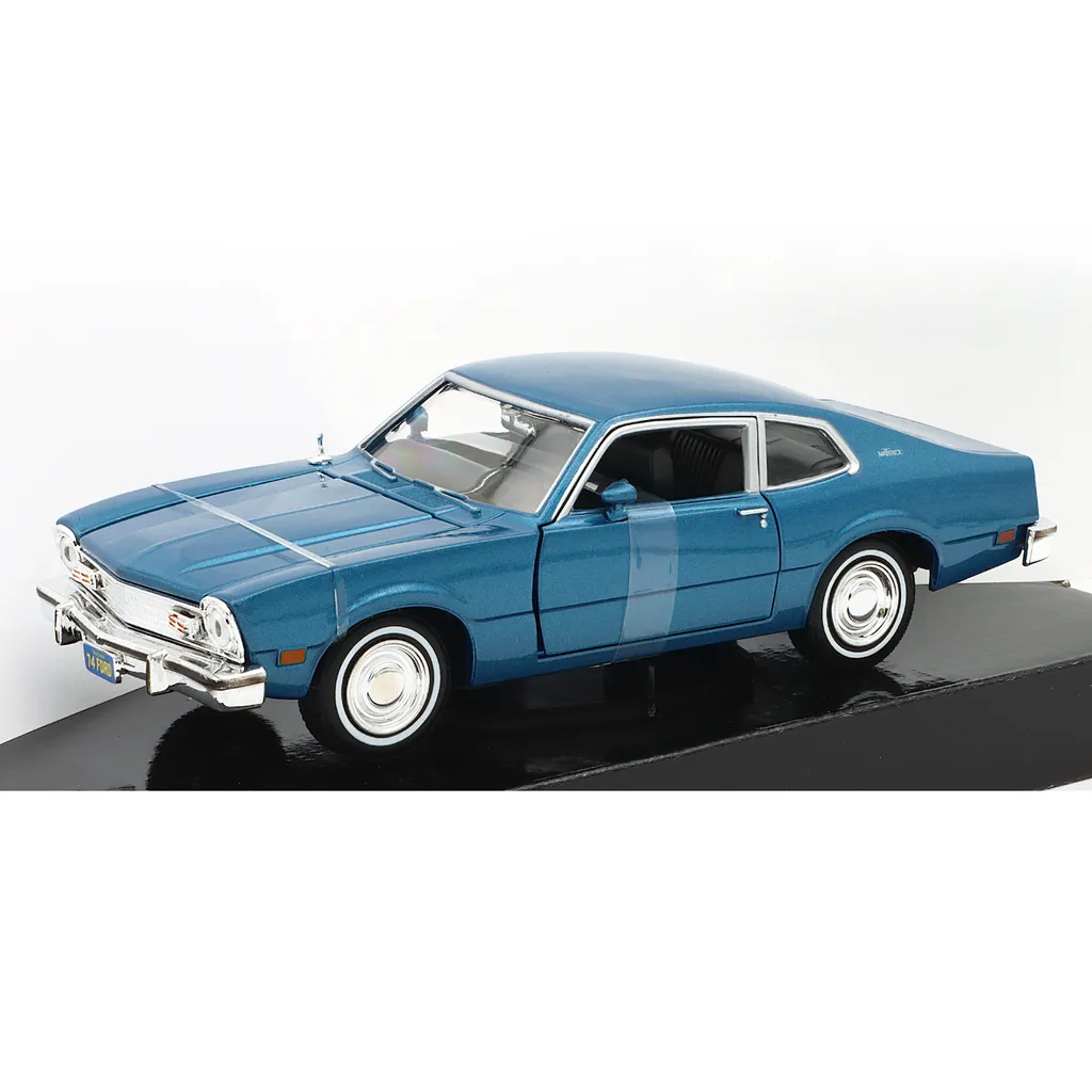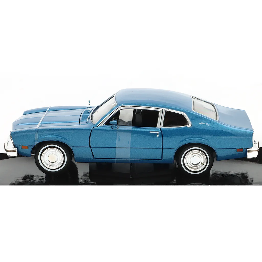 Blå 1974 Ford Maverick modelbil fra Motormax i skala 1:24 (19,5 cm).