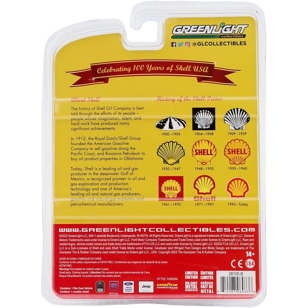 Produktet er en hyldest til Shells 100-års jubilæum i USA. På bagsiden af kortet/pakken er der en tekst om Shell og en præsentation af, hvordan Shell-logoet har ændret sig i løbet af disse 100 år. Se billedet.