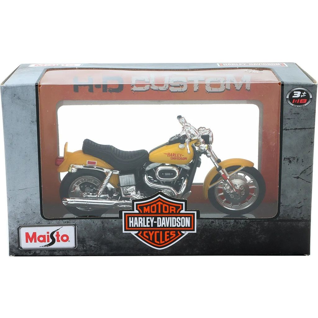 Gul Harley-Davidson 1977 FXS Low Rider fra producenten Maisto i skala 1:18.