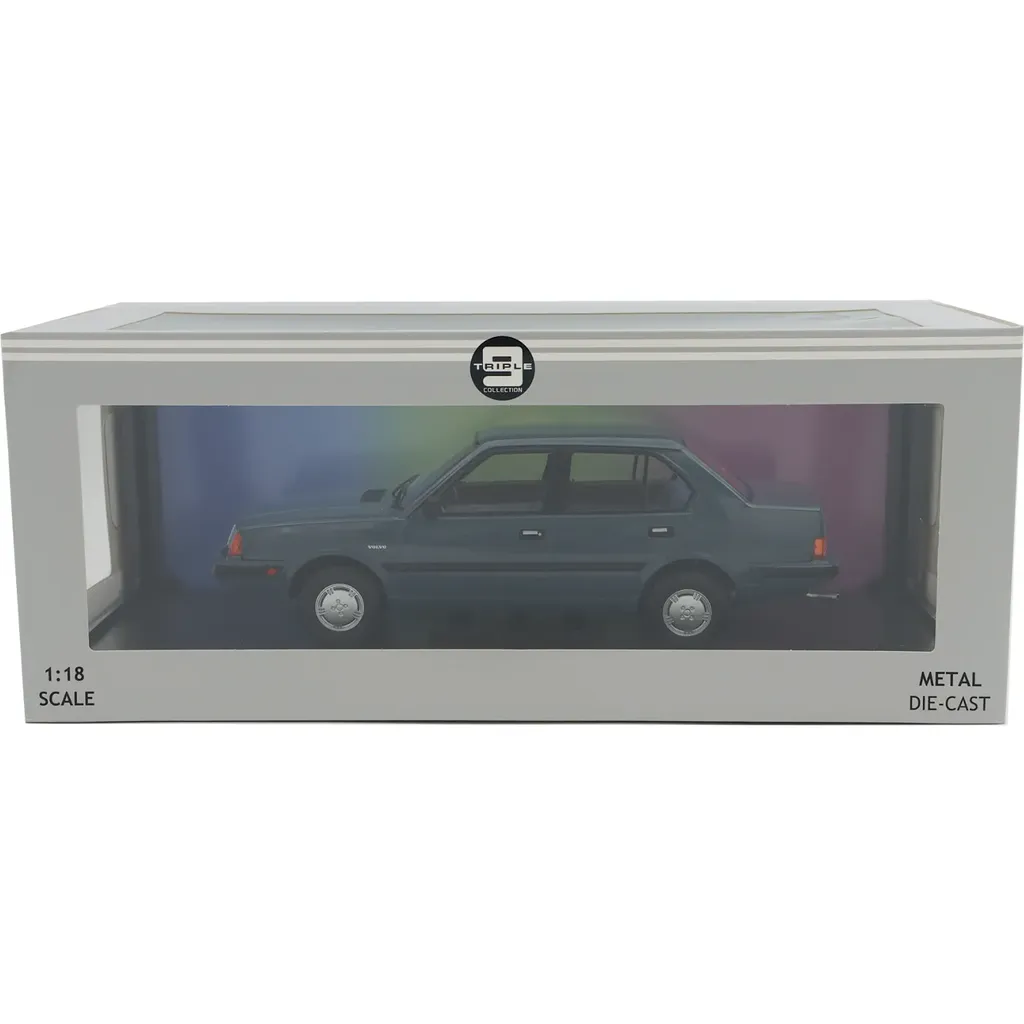 1987 Volvo 360 GLT i farven blågrå fra modelbilproducenten Triple9 Collection i skala 1:18 (24 cm).