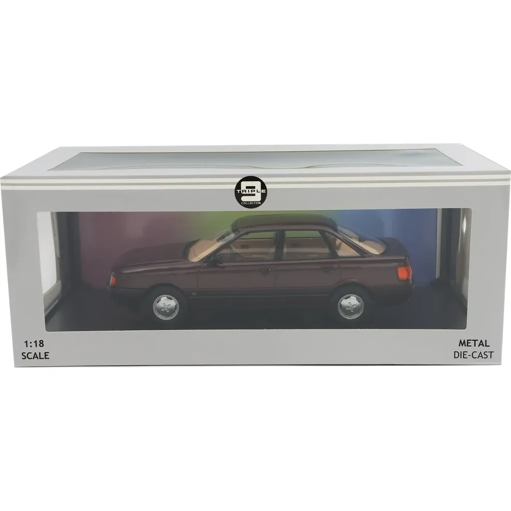 Mørkerød Audi 80 B3, modelår 1989, fra Triple9 Collection i skala 1:18 (24 cm).
