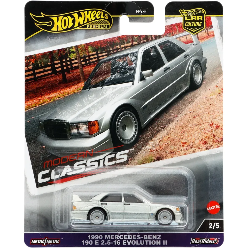 1990 Mercedes-Benz 190 E 2.5-16 Evolution II som legetøjsbil fra Hot Wheels og Car Culture Modern Classics-sættet fra 2024, hvor denne bil er nummer 2 ud af 5.