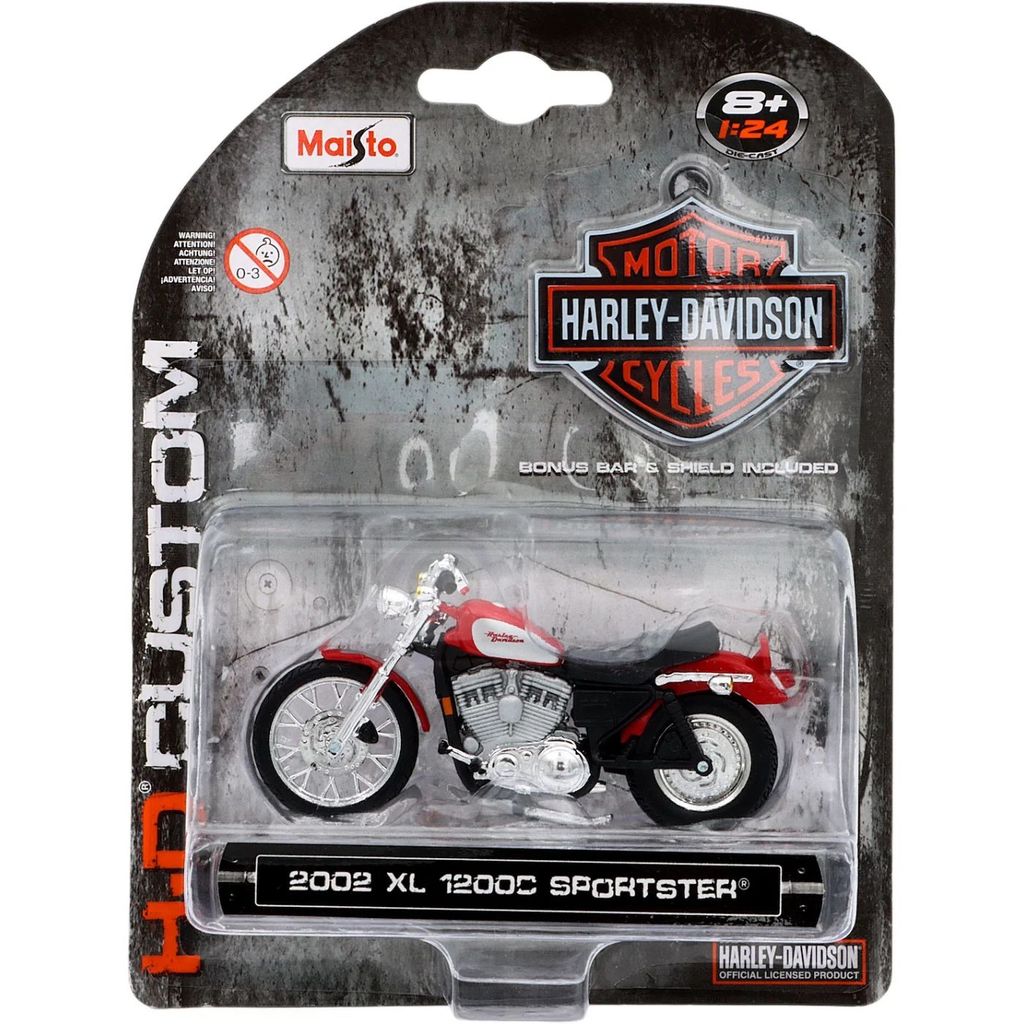 Rød Harley-Davidson 2002 XL 1200C Sportster fra producenten Maisto i skala 1:24.