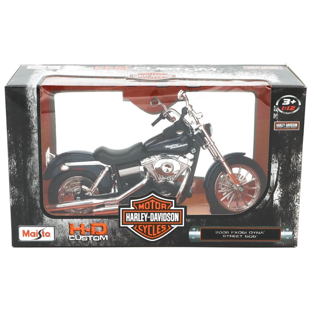 Mørkeblå metallak (næsten sort) Harley-Davidson 2006 FXDBI Dyna Street Bob fra producenten Maisto i skala 1:12 (18 cm).