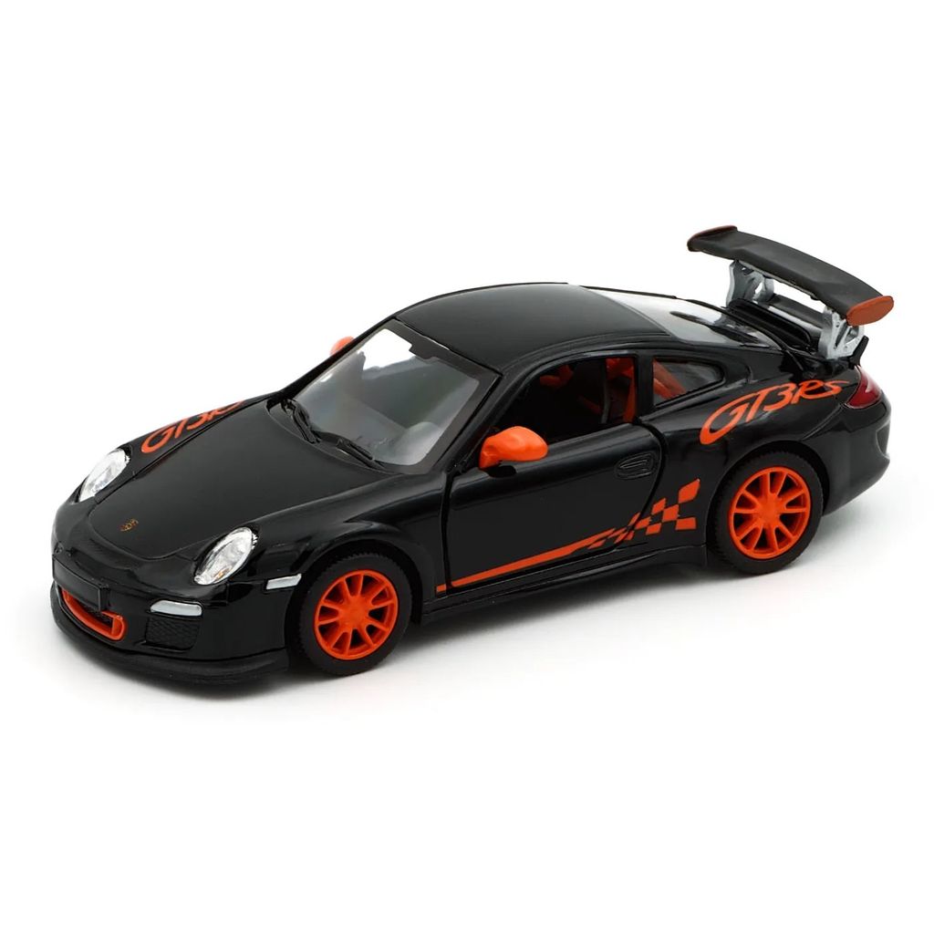 2010 Porsche 911 GT3 RS fra Kinsmart til leg eller samling. Skalaen er 1:36 (ca. 12,7 cm). Døre kan åbnes og trækkes tilbage.