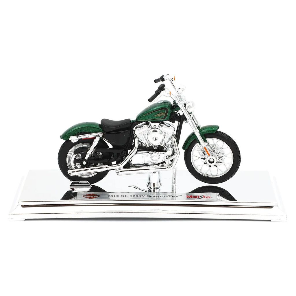 Harley-Davidson 2012 XL 1200V Seventy-Two i grøn metallak fra producenten Maisto i skala 1:18 (12 cm).
