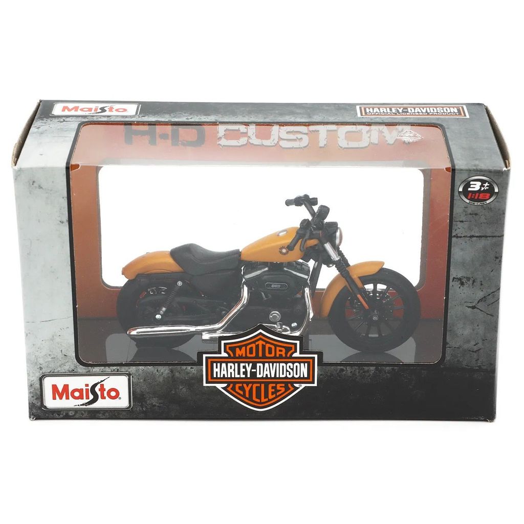 Harley-Davidson 2014 Sportster Iron 883 i gulbrun (matlakering) fra producenten Maisto i skala 1:18 (12 cm).