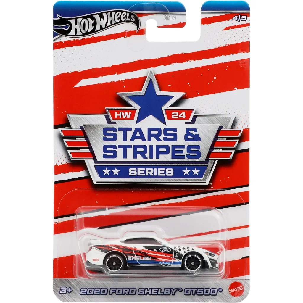 2020 Ford Shelby GT500 fra Hot Wheels og Stars & Stripes-serien fra 2024, hvor denne Ford Shelby er bil nummer 4 ud af 5.