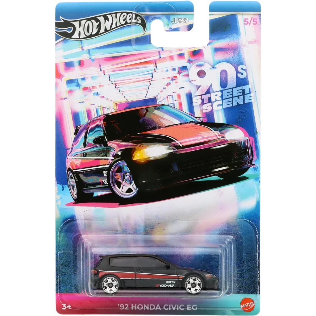 '92 Honda Civic EG i sort fra Hot Wheels og 90'ernes Street Scene-serie, hvor denne bil er nummer 5 ud af 5.