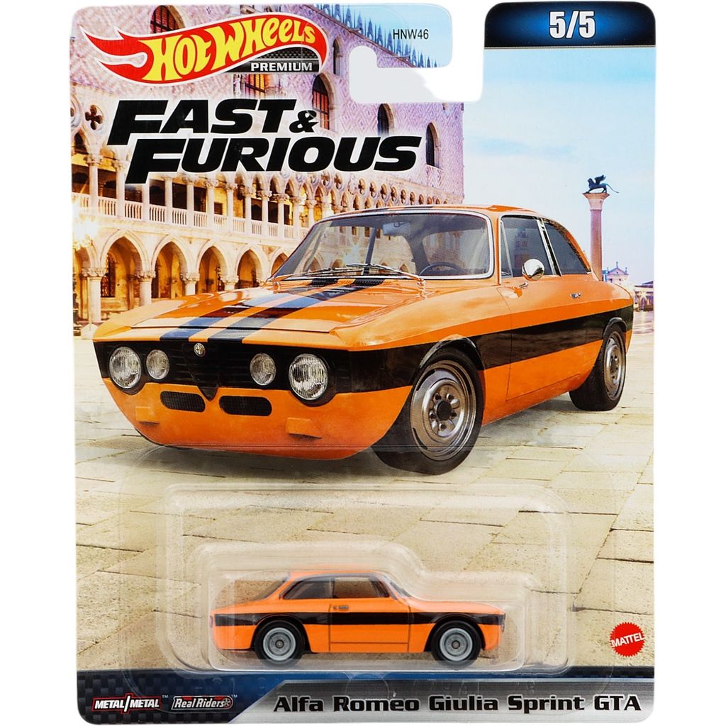 Alfa Romeo Giulia Sprint GTA fra Hot Wheels og sættet Fast & Furious (Mix 3) fra 2023, hvor denne Alfa er bil nummer 5 ud af 5 i sættet.