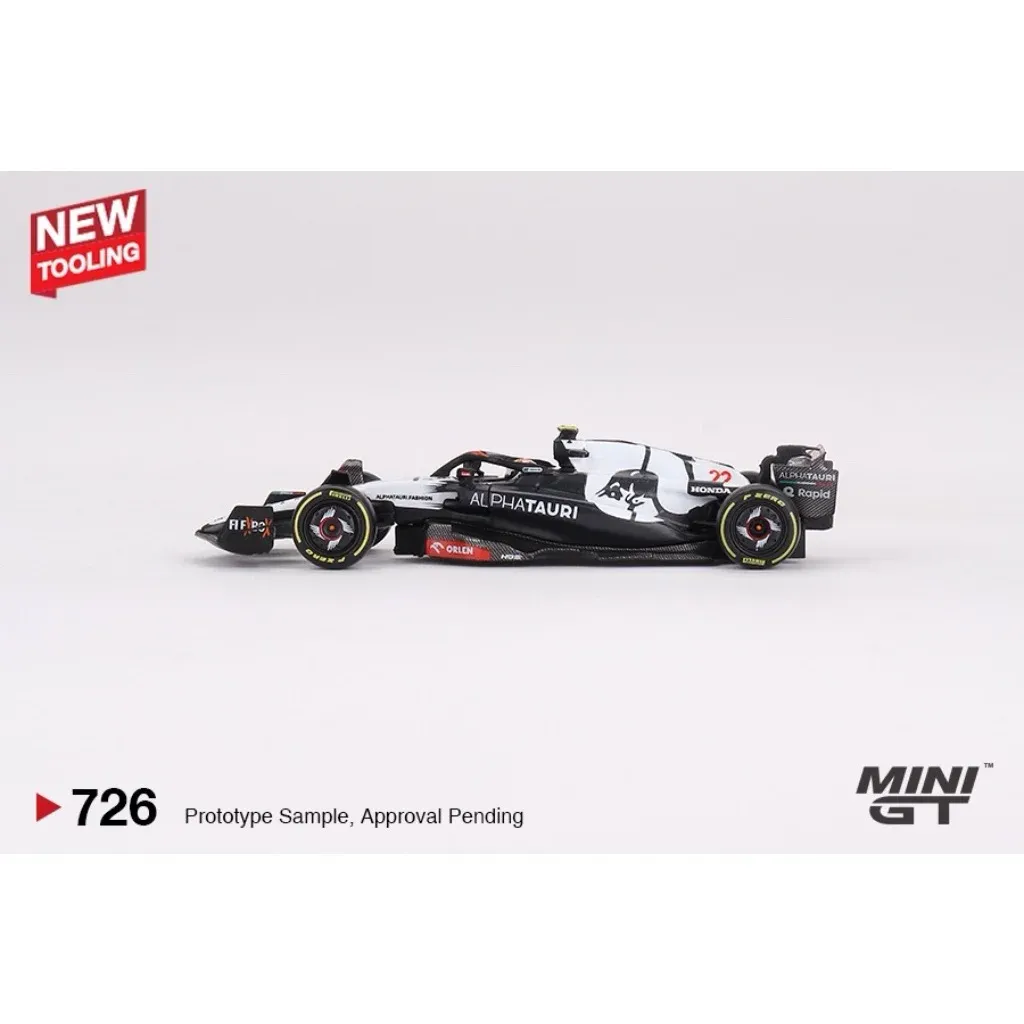 AlphaTauri AT04 #22 2023 F1 Australian GP Yuki Tsunoda som model fra Mini GT i skala 1:64 (ca. 7 cm).