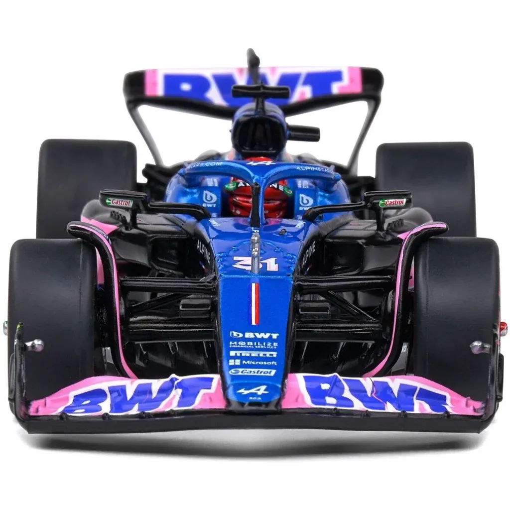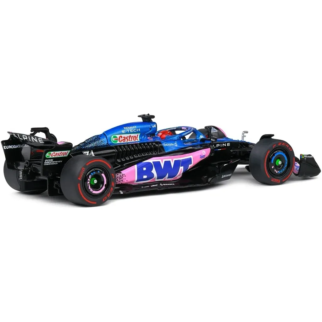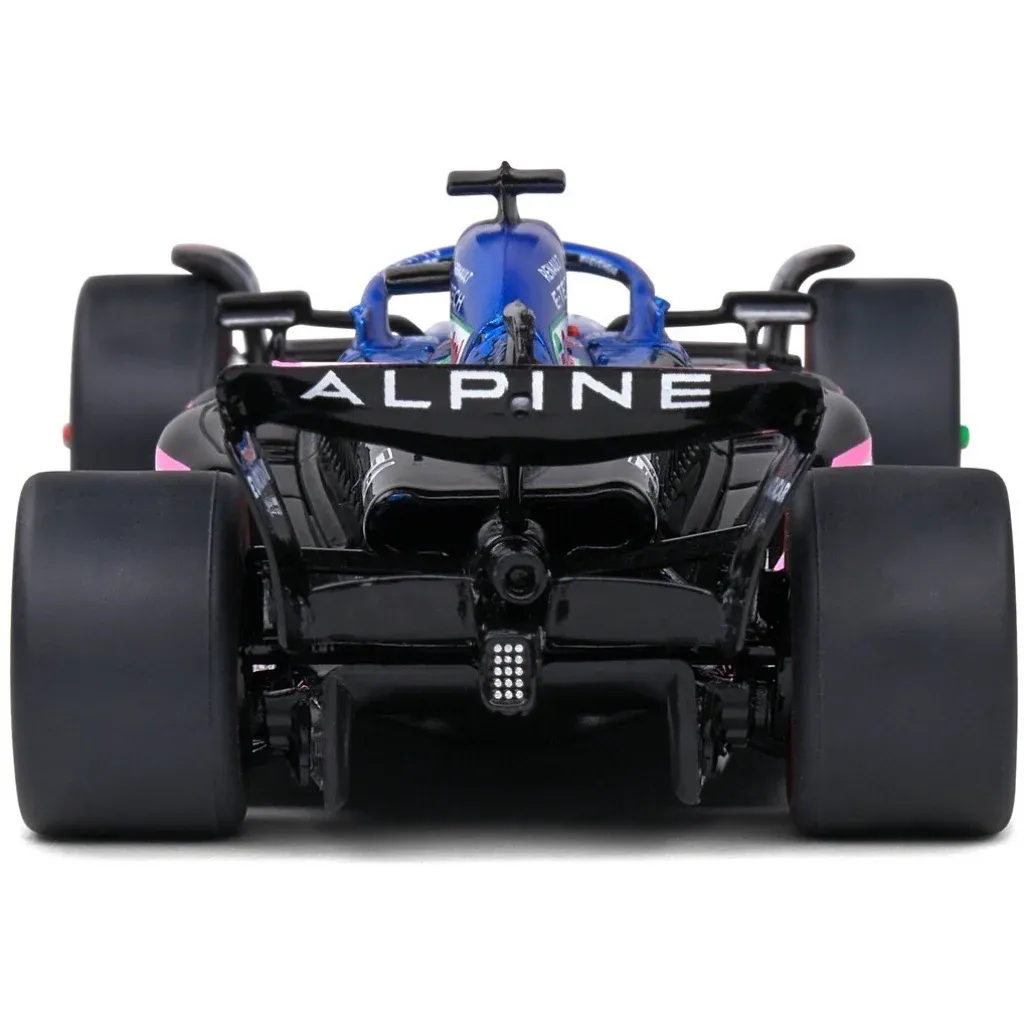 Model af A523 Formel 1-bilen fra Alpine fremstillet af Solido i skala 1:43 (13 cm). Netop denne bil, med denne bemaling og nummer 31, blev kørt under Monacos GP i 2023 af Esteban Ocon.