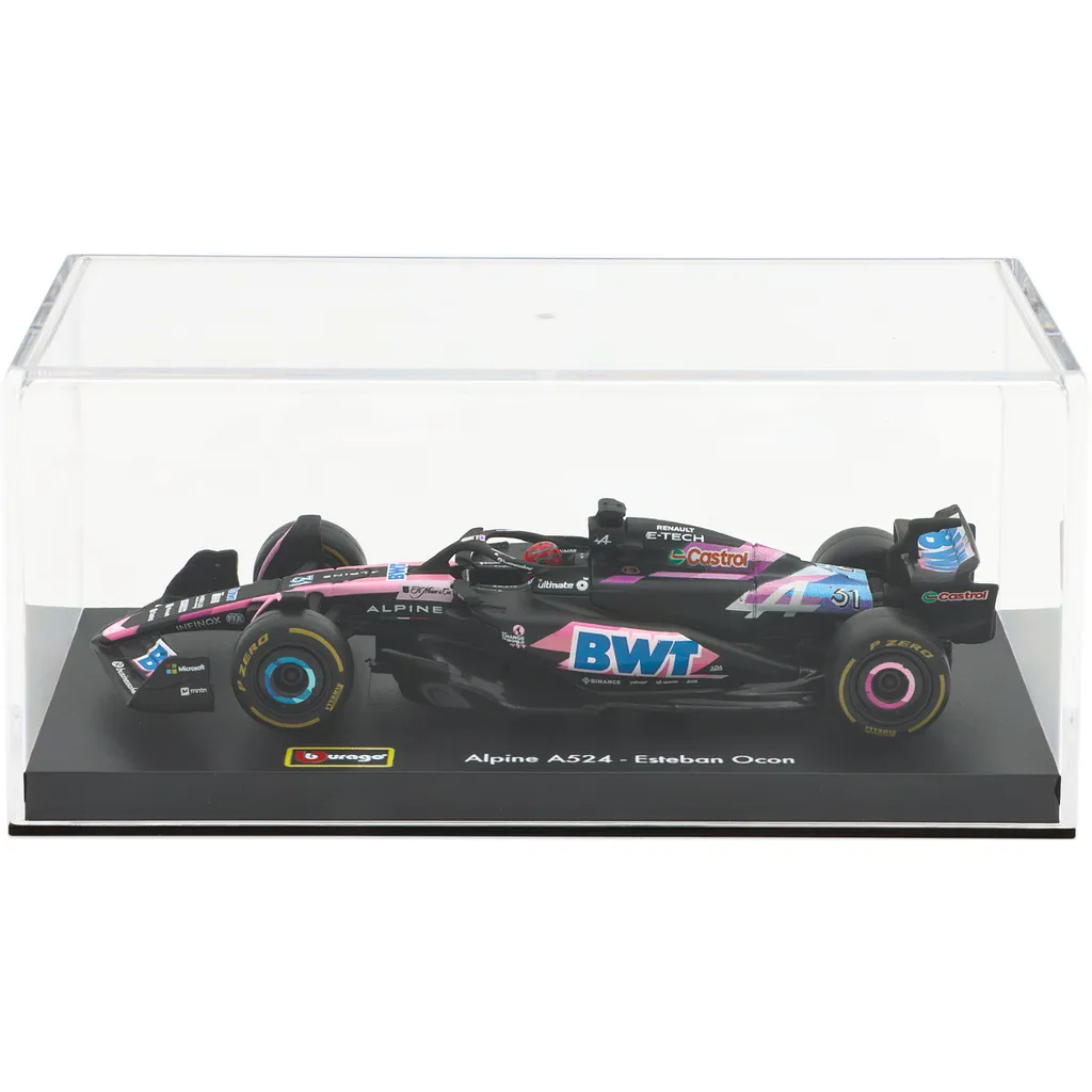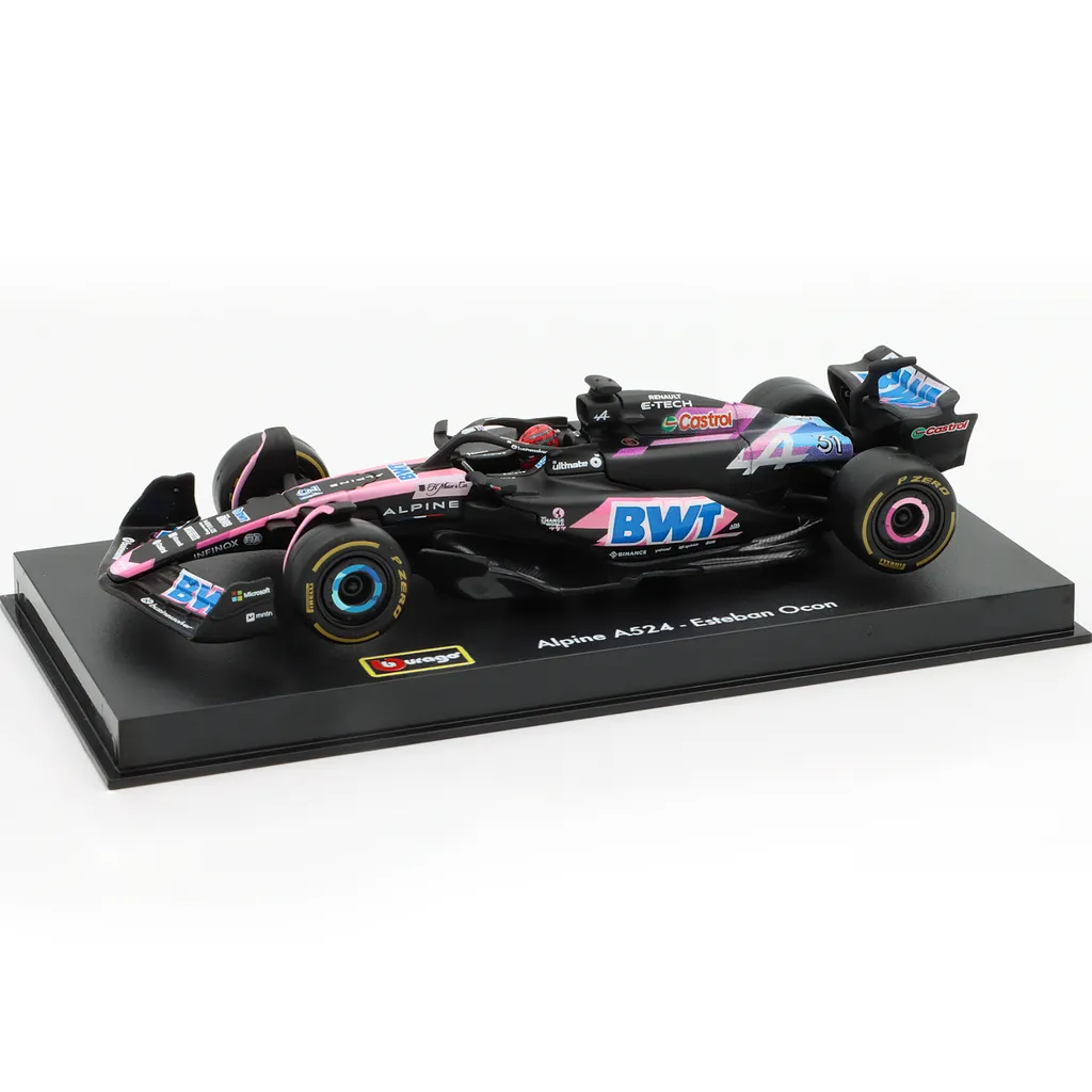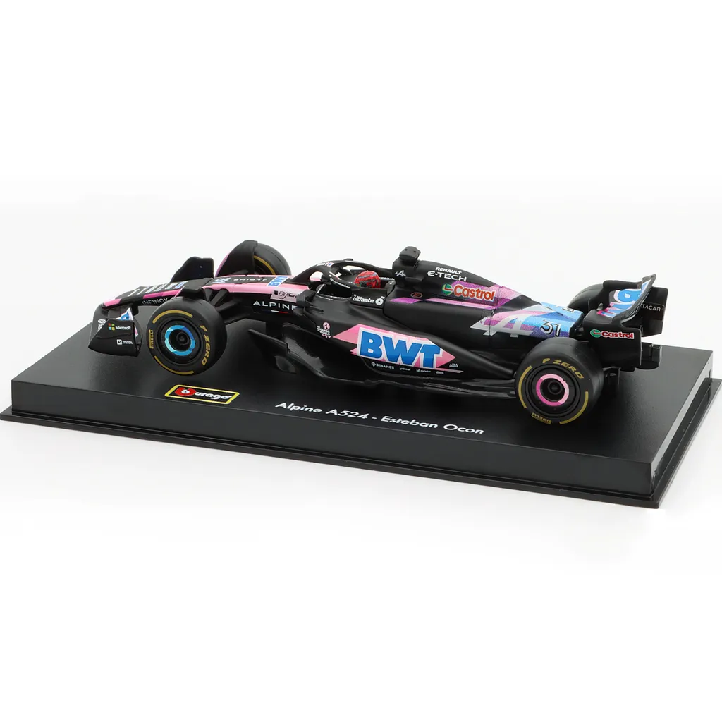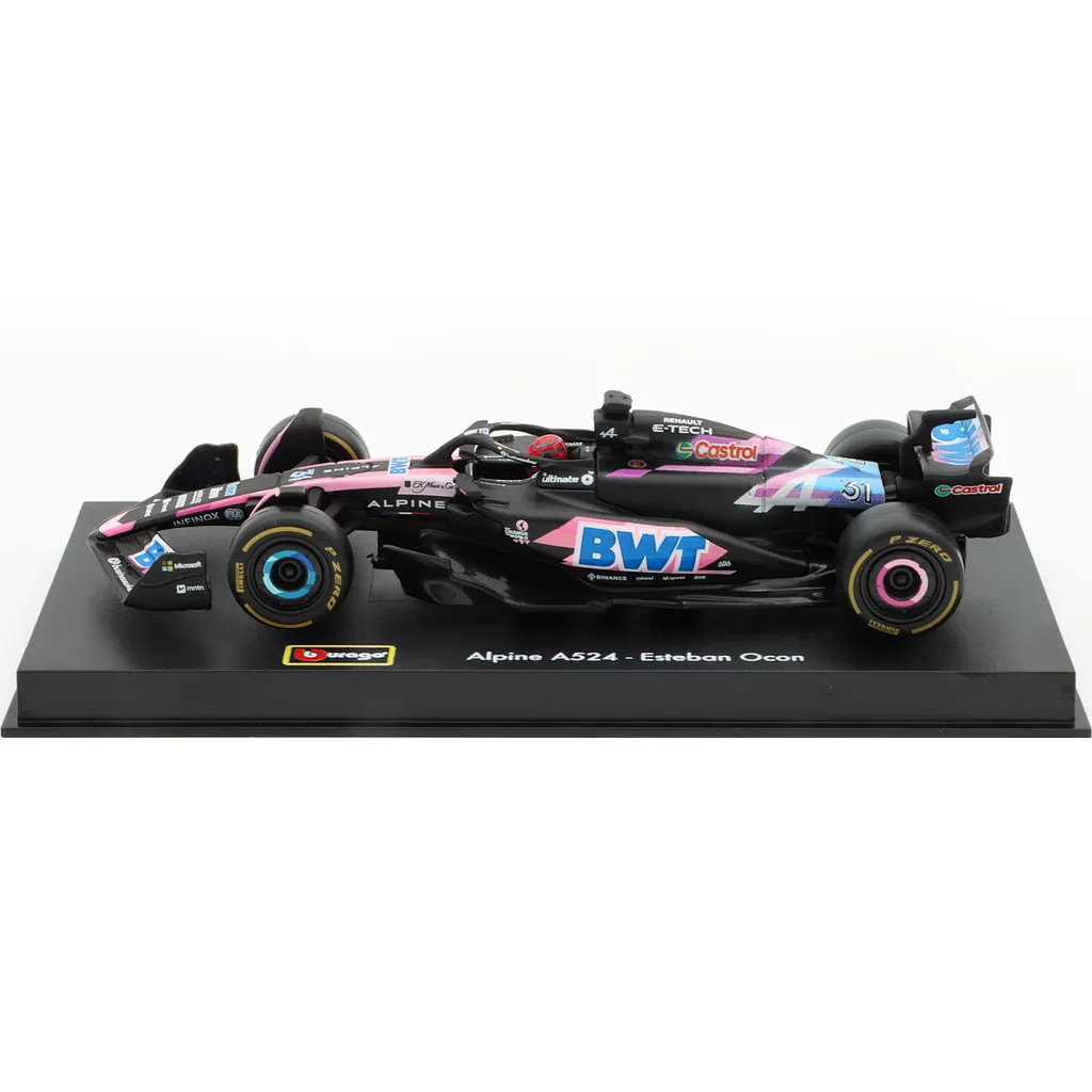 Alpine A524 med nummer 31 blev kørt af Esteban Ocon i F1-sæsonen 2024. Denne modelbil er lavet af Bburago i skala 1:43, hvilket betyder, at den er 13 cm lang. Bilen leveres i en showcase.