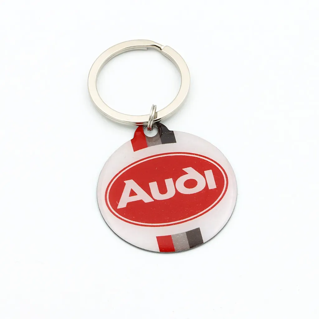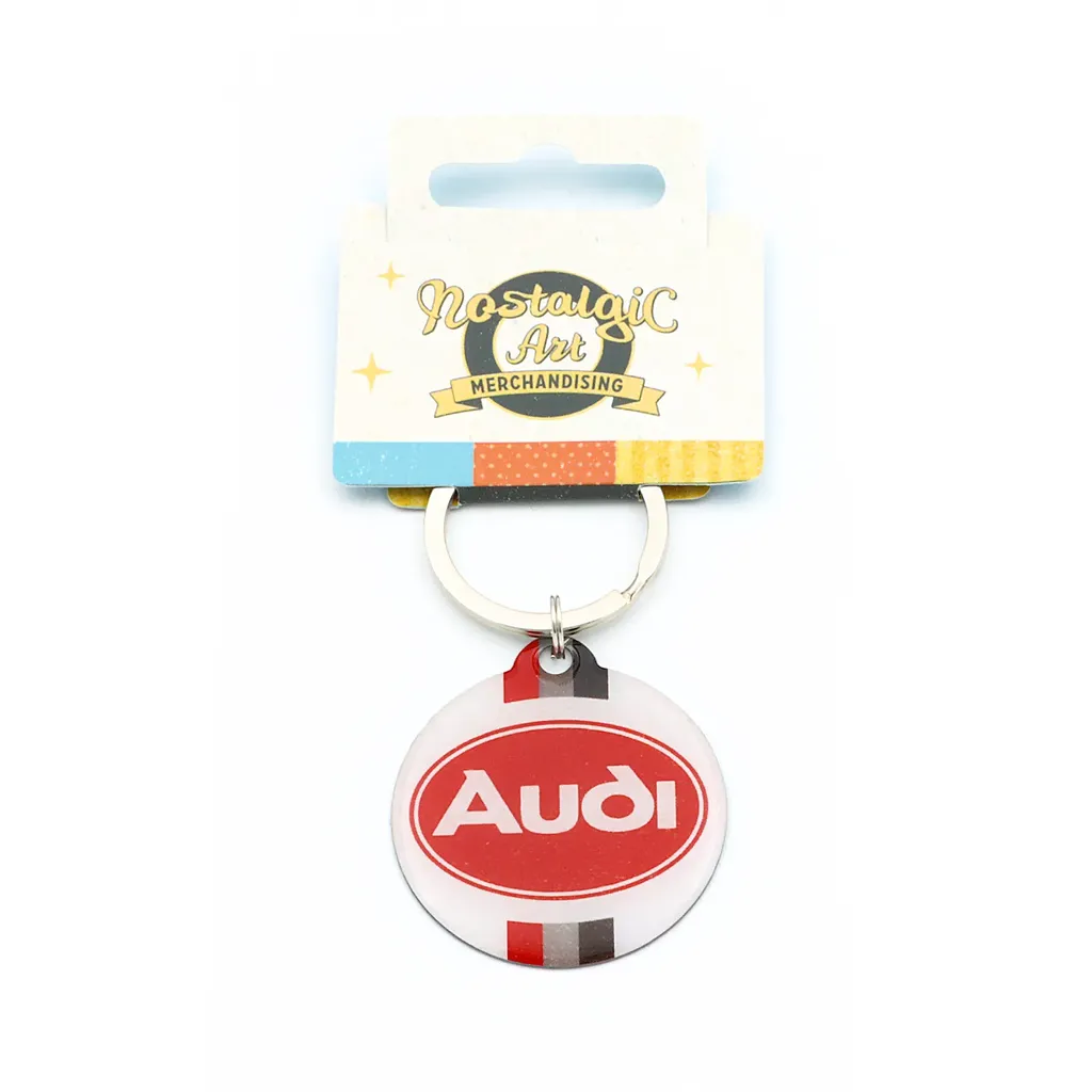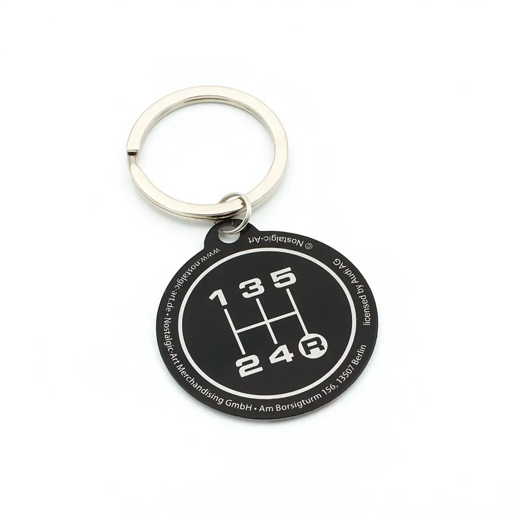 Nøglering med Audi-logo på den ene side og toppen af en gearstang på den anden side.
