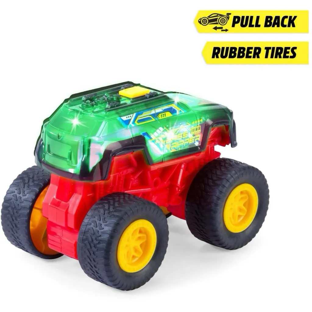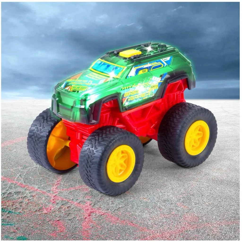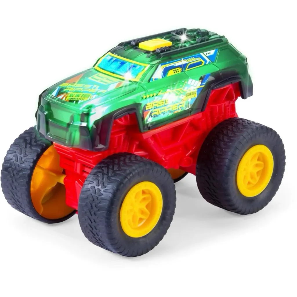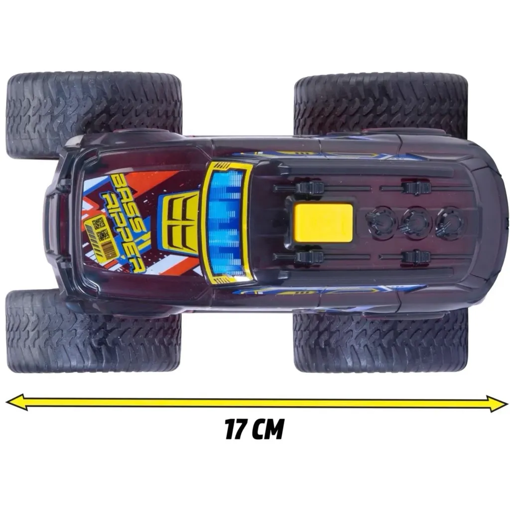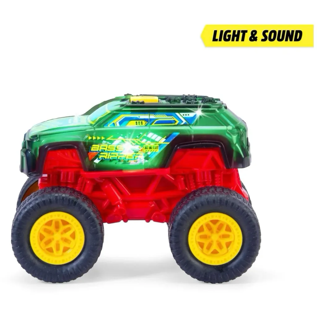 Bass Ripper monster truck er en sort, 17 cm lang legetøjstruck fra Dickie Toys med lys og lyd.