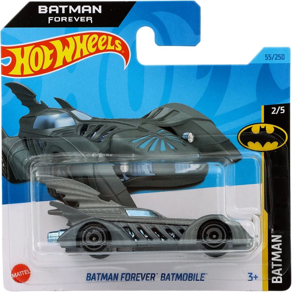 Batman Forever Batmobile fra Hot Wheels og Batman-serien, hvor denne legetøjsbil er bil nummer 2/5. Bilen er nummer 55/250 fra 2023 og har et kort kort (5785).