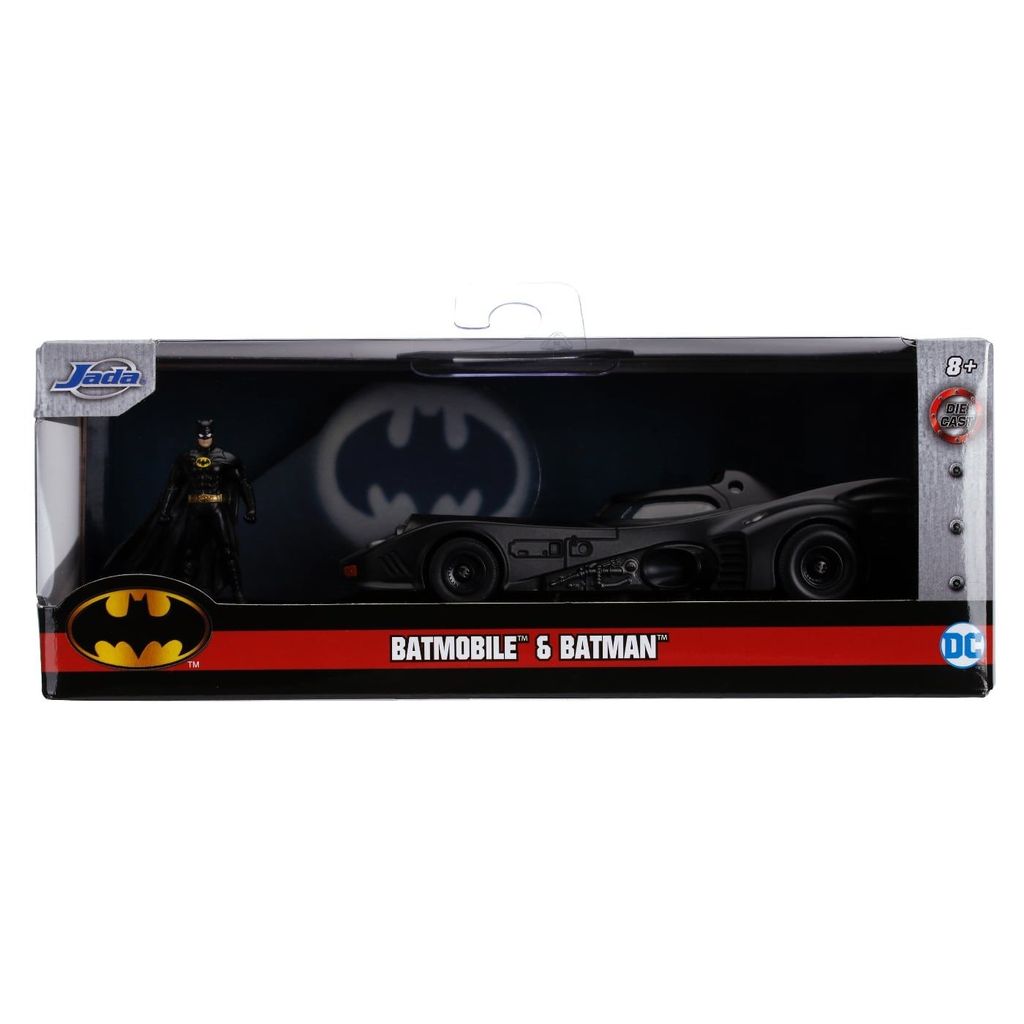 Batmobil & Batman, Batman-figur og Batman-bil modelår 1989. Legetøjet anbefales fra 8 år, og produktet er populært også som samlerobjekt. Skalaen er 1:32, hvilket giver os en Batmobil på 13 cm fra Jada Toys. Bilen er lavet af metal med plastdetaljer og gummihjul.