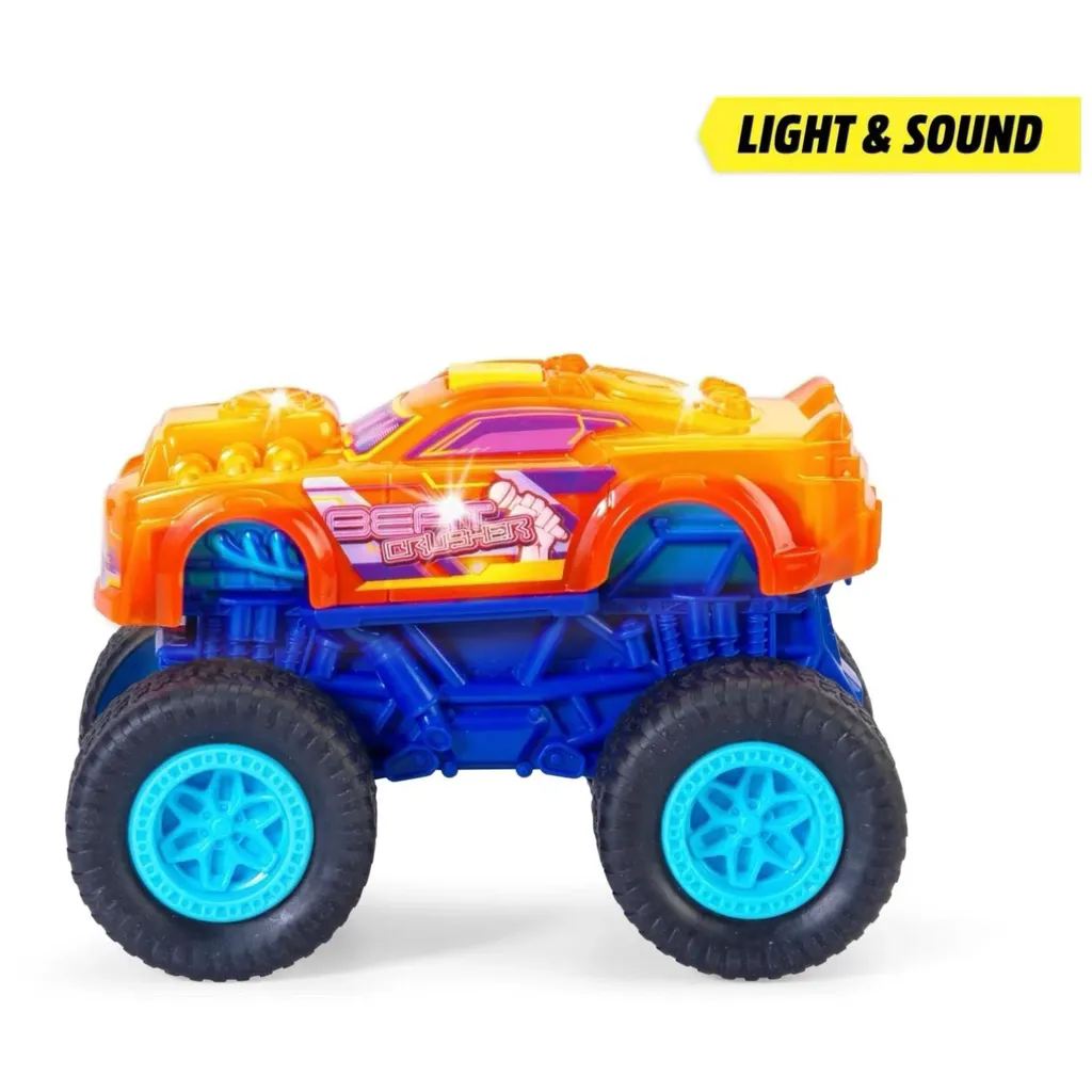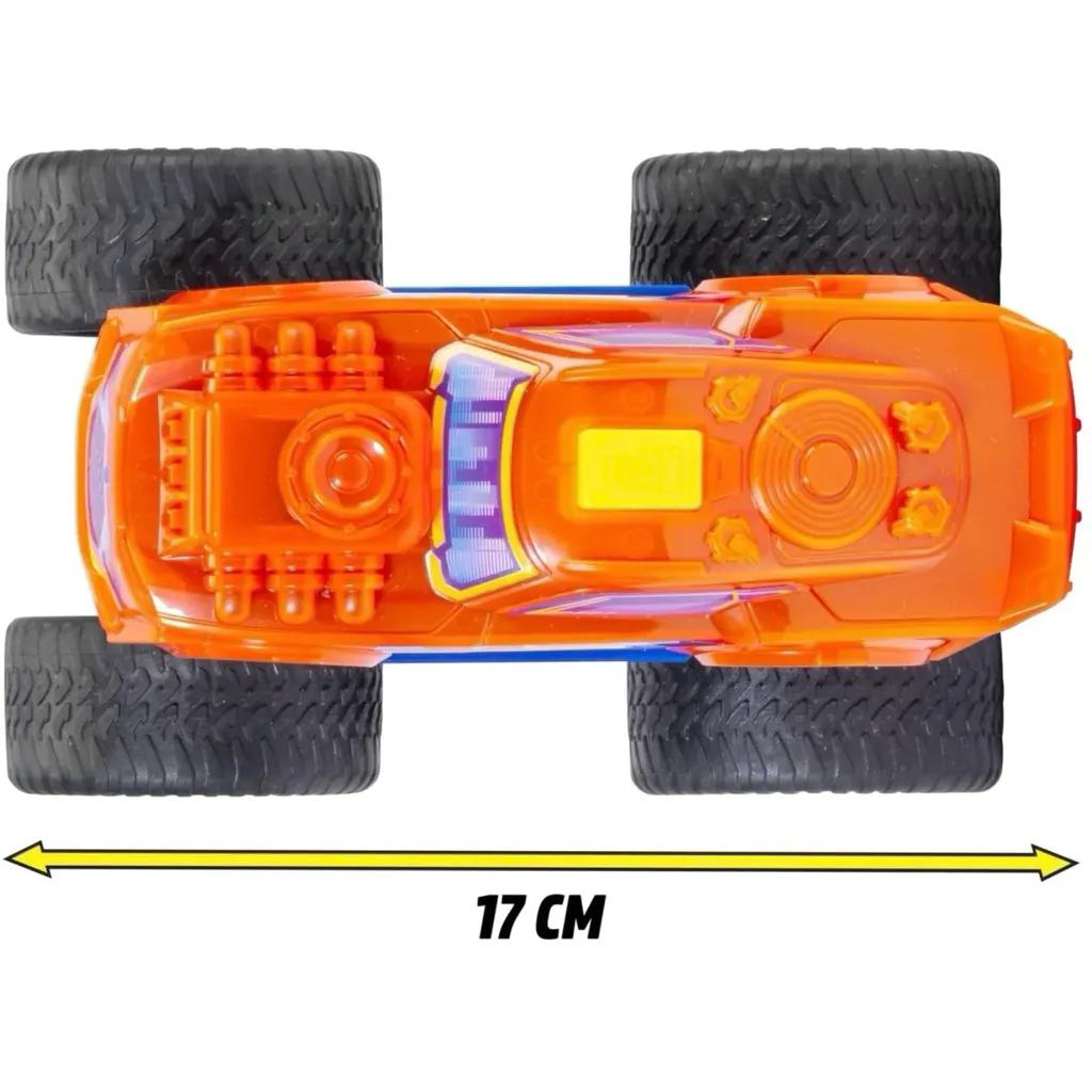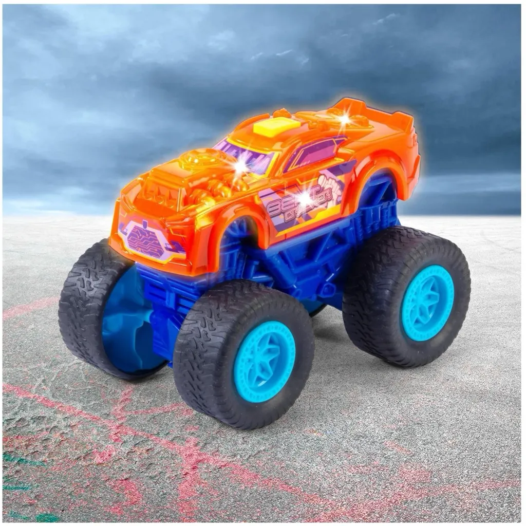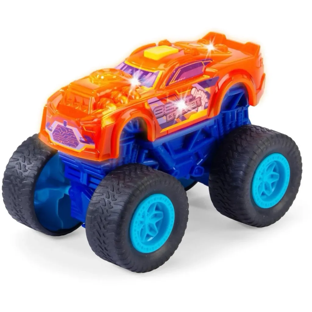Beat Crusher monster truck er en orange, 17 cm lang legetøjstruck fra Dickie Toys med lyd og lys.