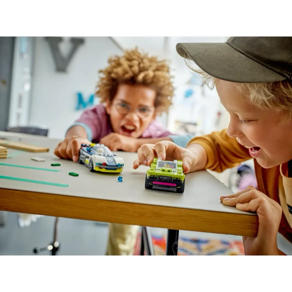 Biljagt med politibil og muskelbil fra LEGO City.