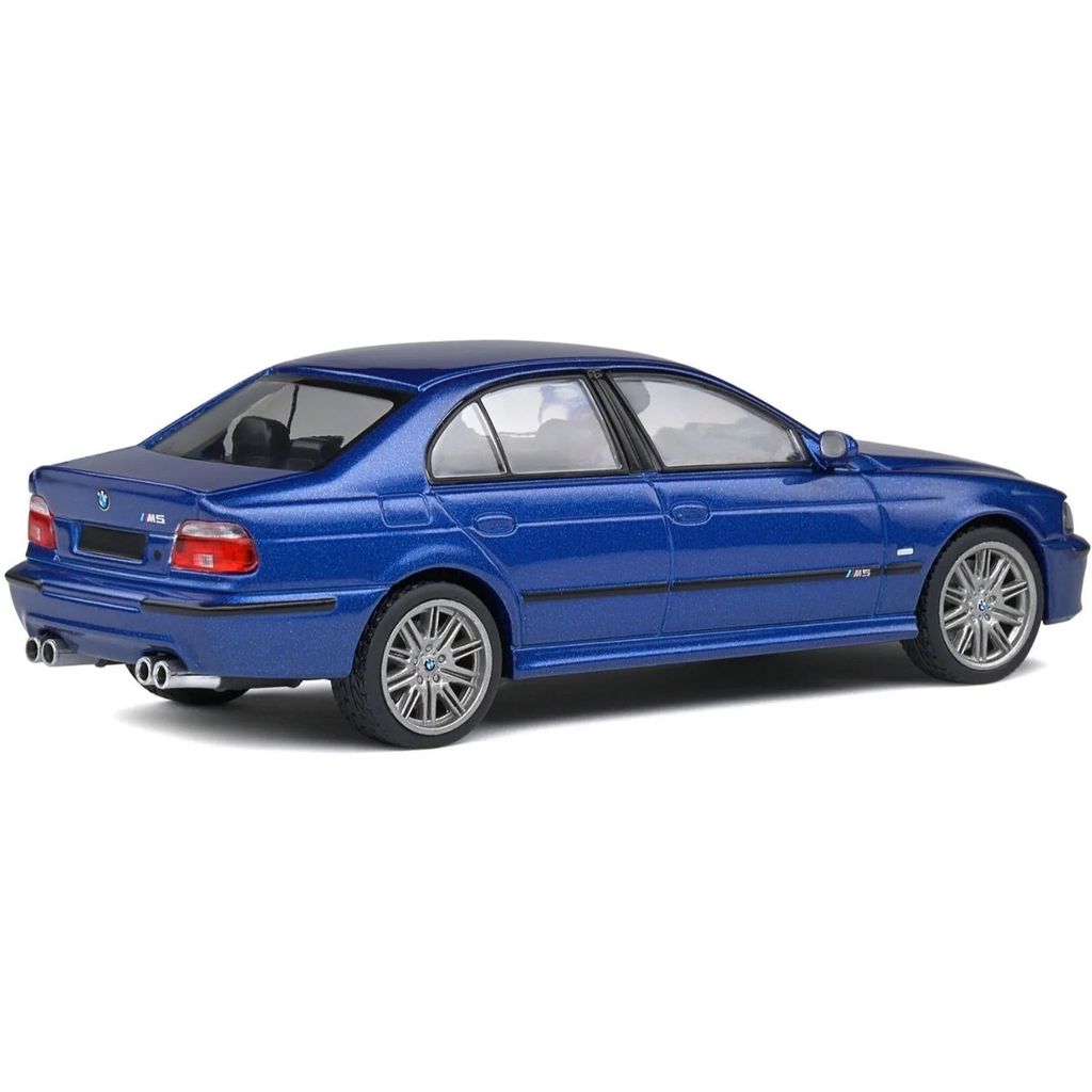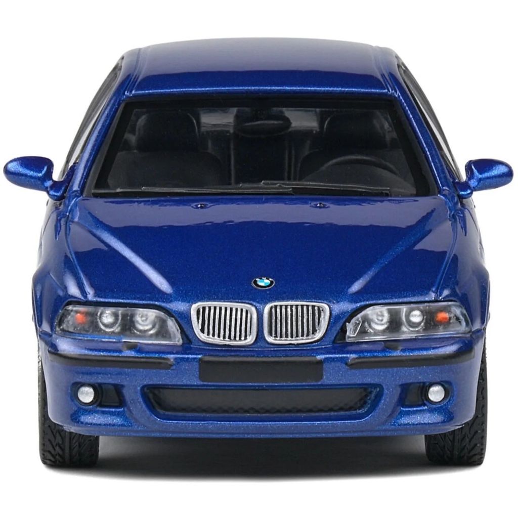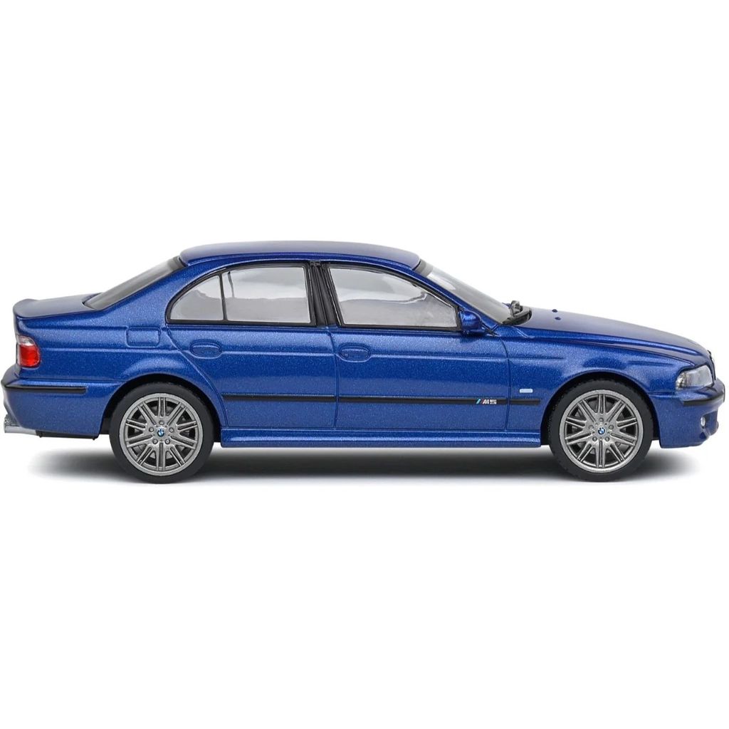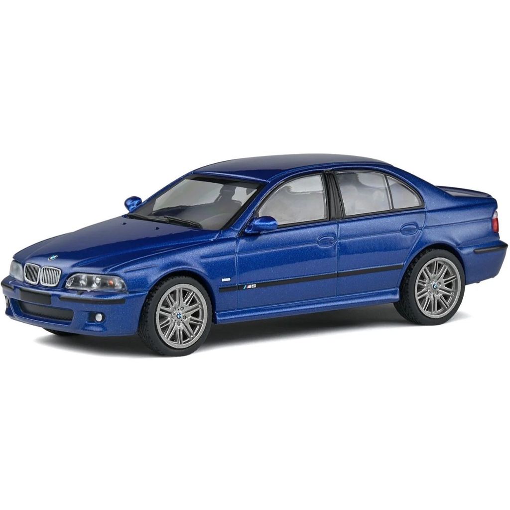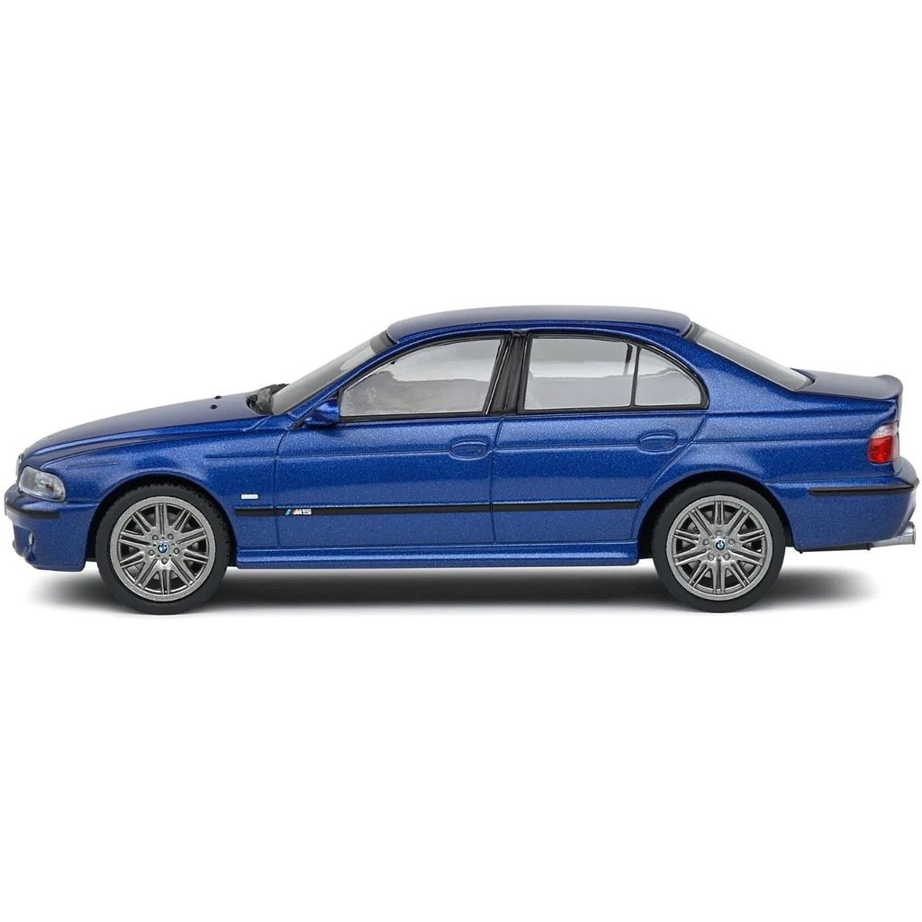 Fra franske Solido tilbyder vi denne blå BMW E39 M5 modelår 2003 i skala 1:43 (11,5 cm). Den blå farve er angivet som "Estoril Blue".
