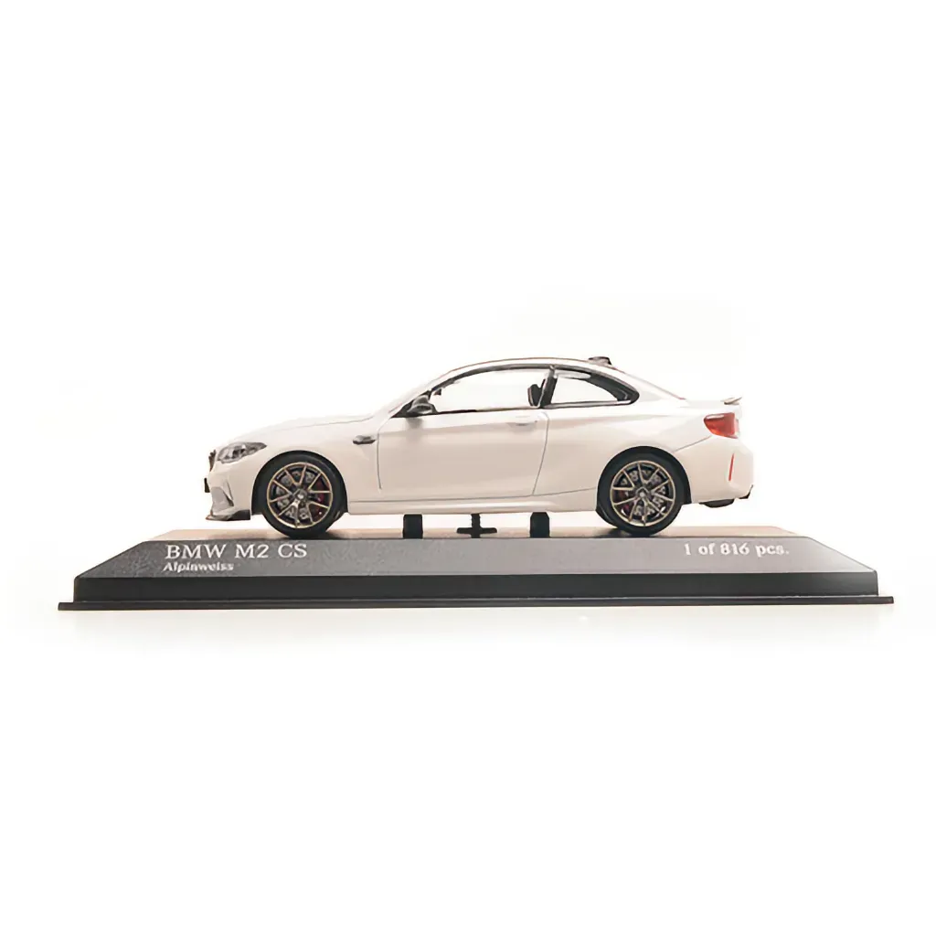 Bilen er lavet af metal og leveres stående på en sort bundplade med dækkende akrylboks. På pladen står der "BMW M2 CS Alpinweiss - 1 af 816 stk.". Modellen er altså kun produceret i 816 eksemplarer.
