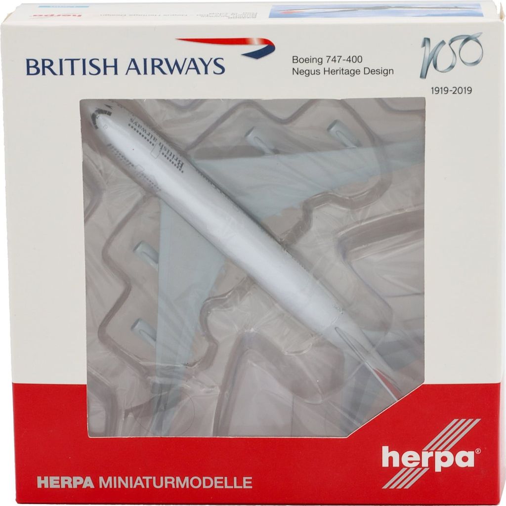 Produktet er fremstillet af Herpa under licens fra Boeing og British Airways. Modellens fulde navn er "British Airways Boeing 747-400 Negus Heritage Design".