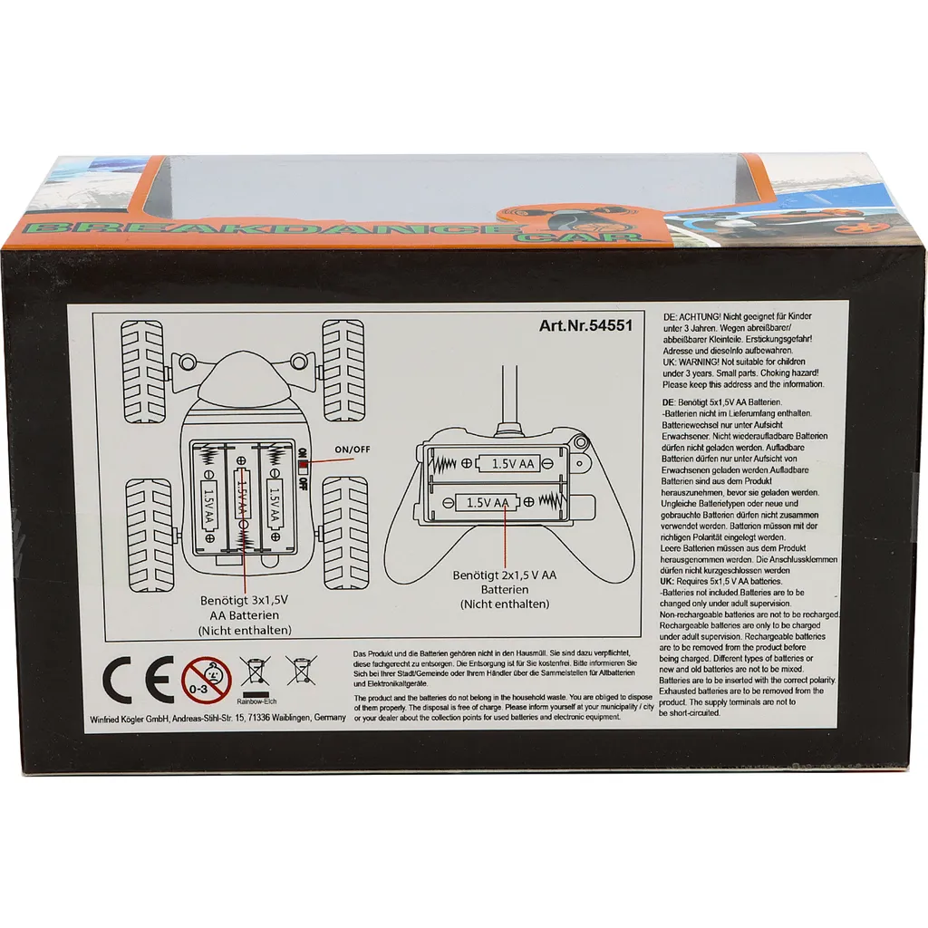 Bilen kræver 3 x AA-batterier (medfølger ikke).