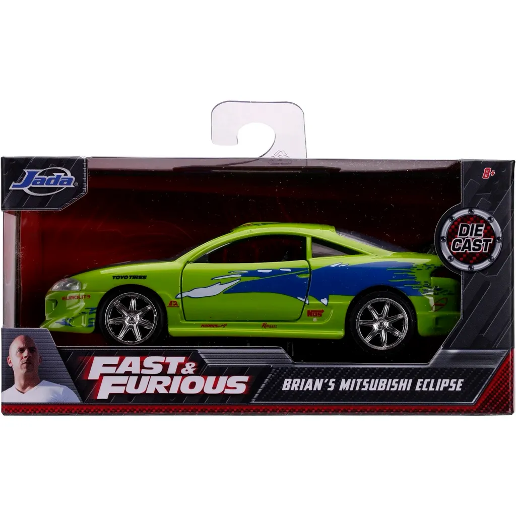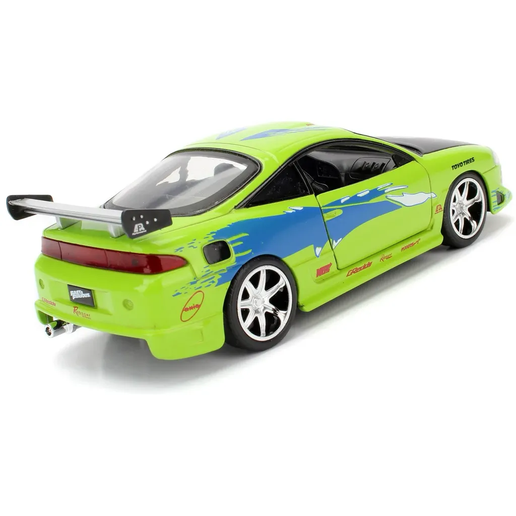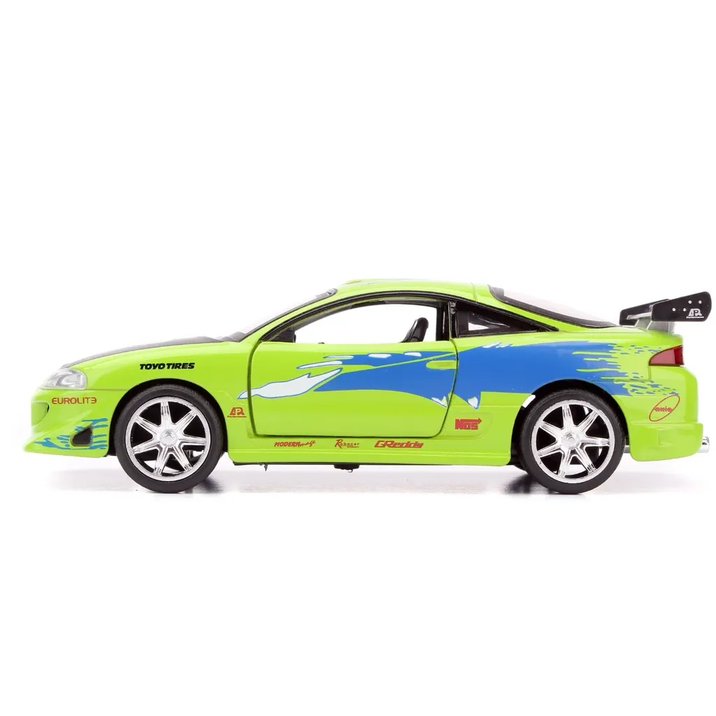 Brians Mitsubishi Eclipse fra 1995 fra Fast & Furious-filmen The Fast and the Furious fra 2001. Bilen er grøn og blå og 13 cm lang (skala 1:32).