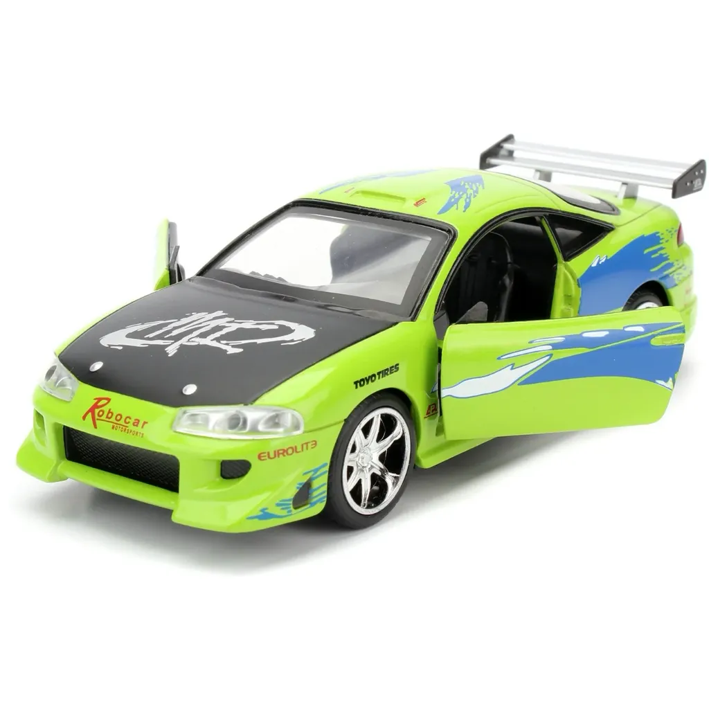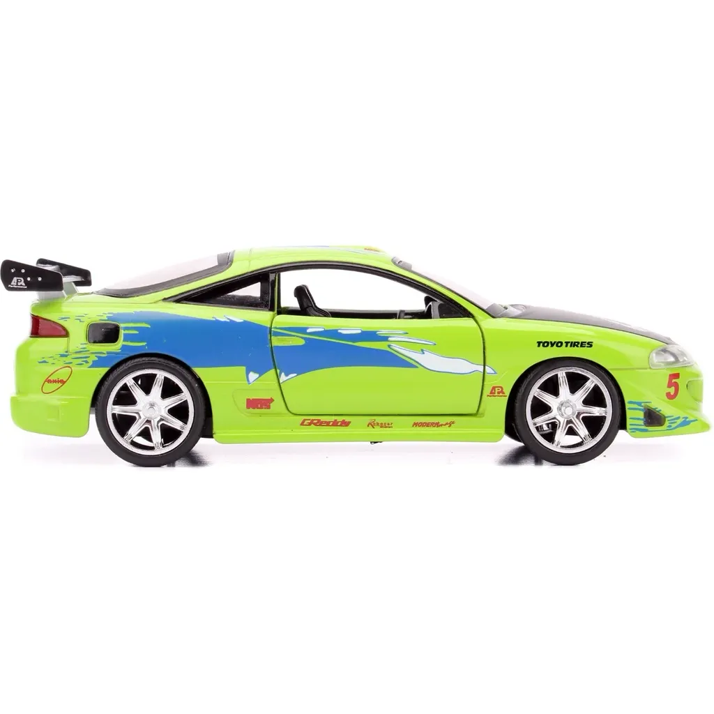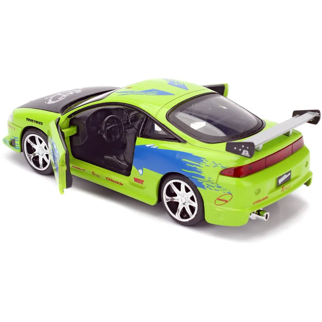 Brians Mitsubishi Eclipse fra 1995 fra Fast & Furious-filmen The Fast and the Furious fra 2001. Bilen er grøn og blå og 13 cm lang (skala 1:32).
