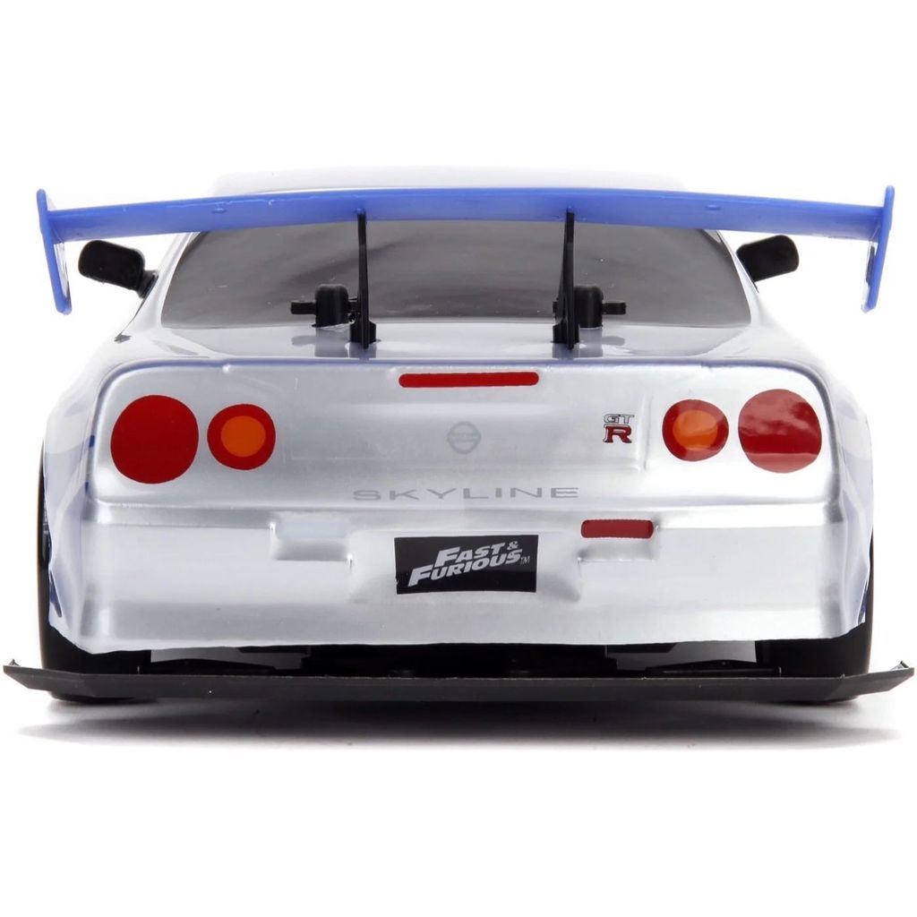 Radiostyret driftbil fra Fast & Furious-serien, Brians Nissan Skyline GT-R (BNR34). Bilen er tilpasset til kørsel på asfalt eller indendørs på parket med konstant ledning (drift). Bilen oplades via USB.