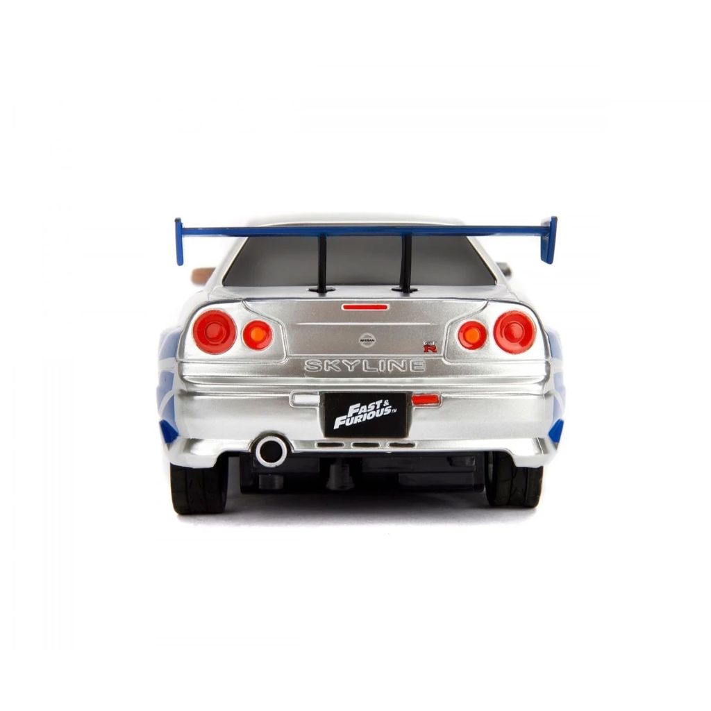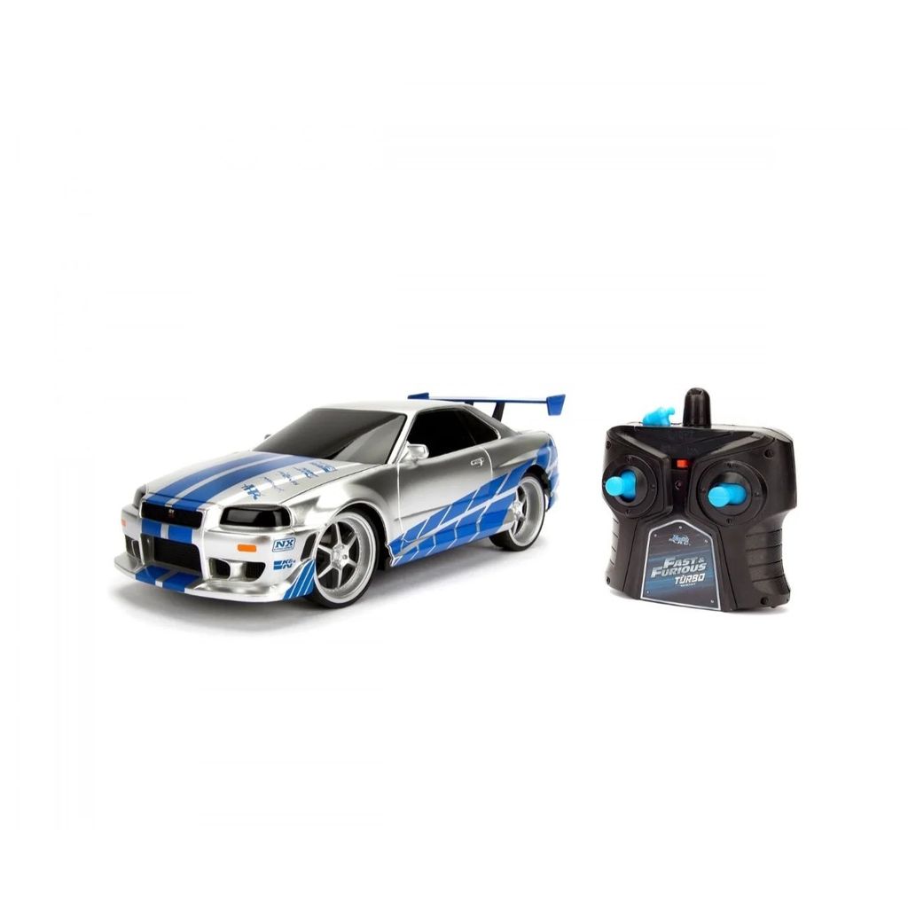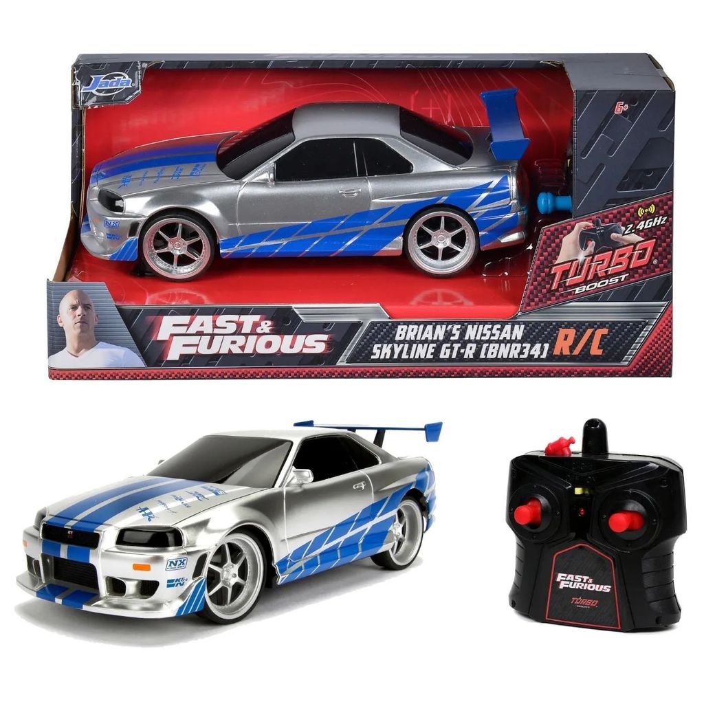 Brian's Nissan Skyline GT-R (BNR34) fra Fast & Furious-filmene som radiostyret bil. Bilen er produceret af Jada Toys i skala 1:24 (19 cm).