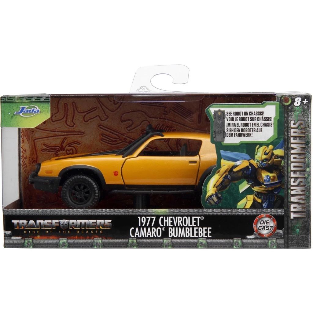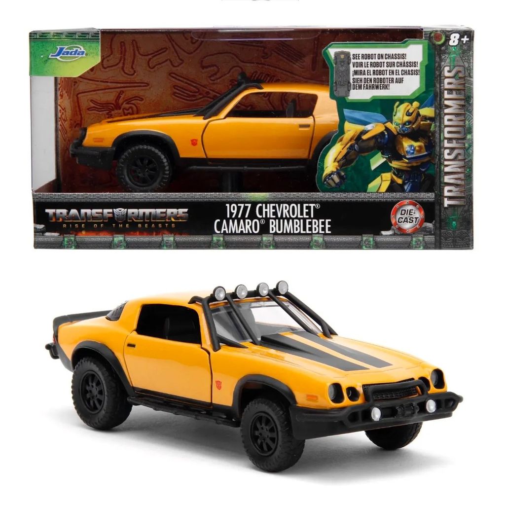1977 Chevrolet Camaro Bumblebee fra Transformers og den syvende film Rise of the Beasts (2023) fra Jada Toys. Bumblebee er 13 cm høj (skala 1:32).