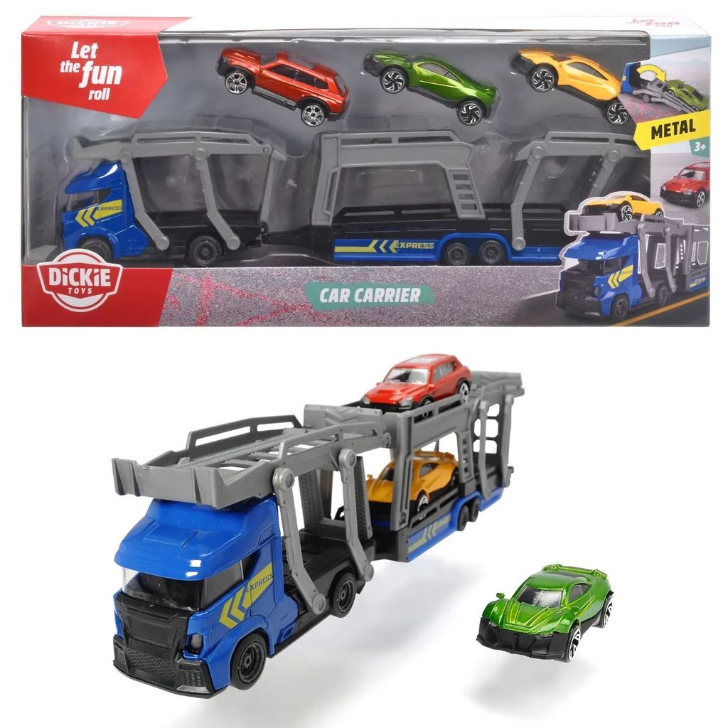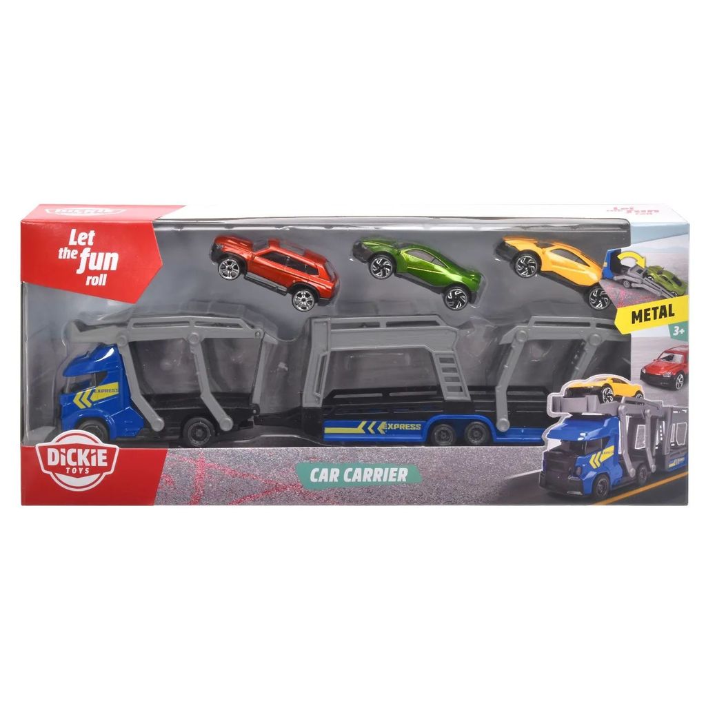 Car Carrier fra Dickie Toys med tre tilhørende biler.