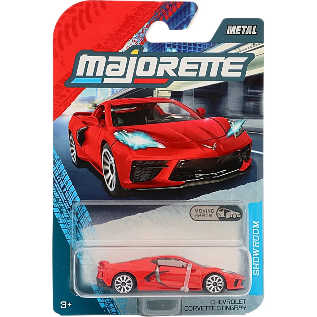 Chevrolet Corvette Stingray fra Majorette og Showroom Premium Cars-serien. Bilen er 7 cm lang og lavet af metal med plastdetaljer.