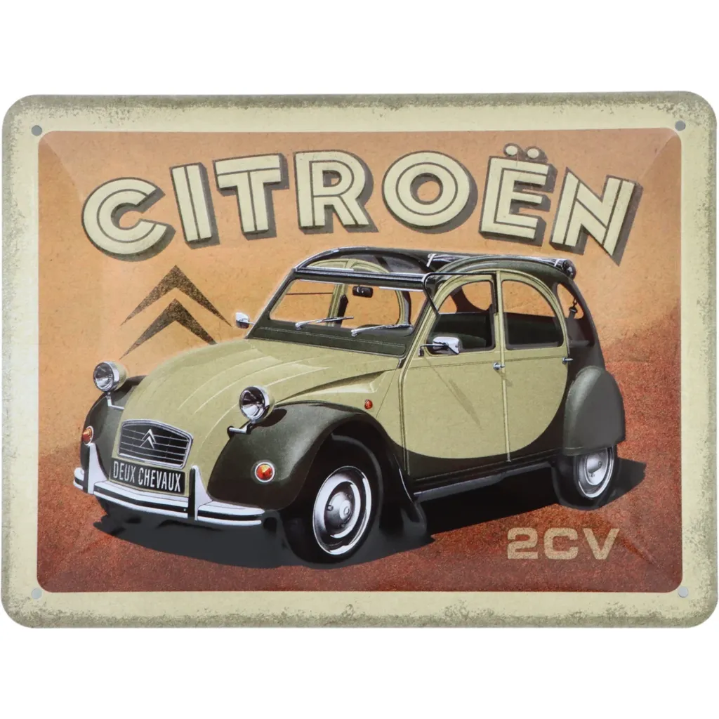 Citroën 2CV - Plåtskylt - 15x20 cm