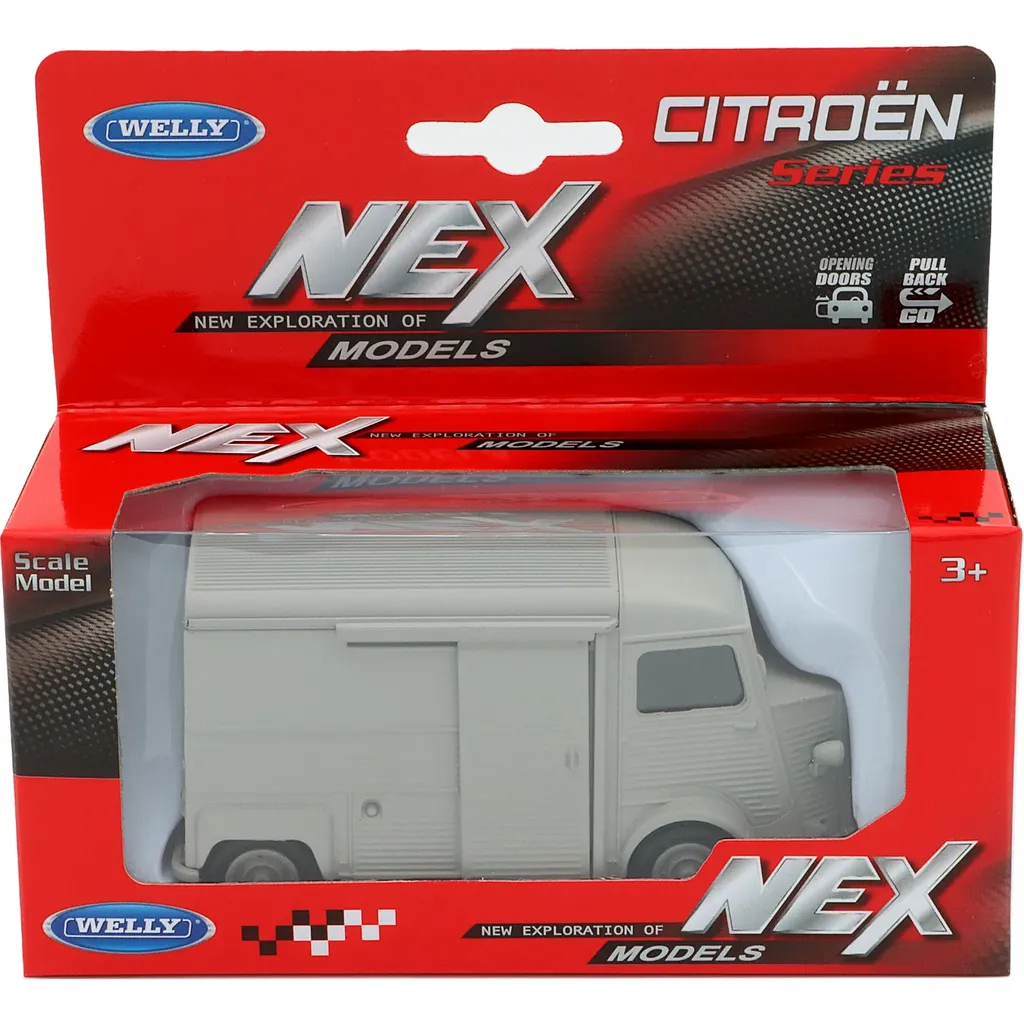 Citroën H Van i gang fra Welly. Åbner skydedør. Bilen er 11,5 cm (målestok ca. 1:34-1:39).