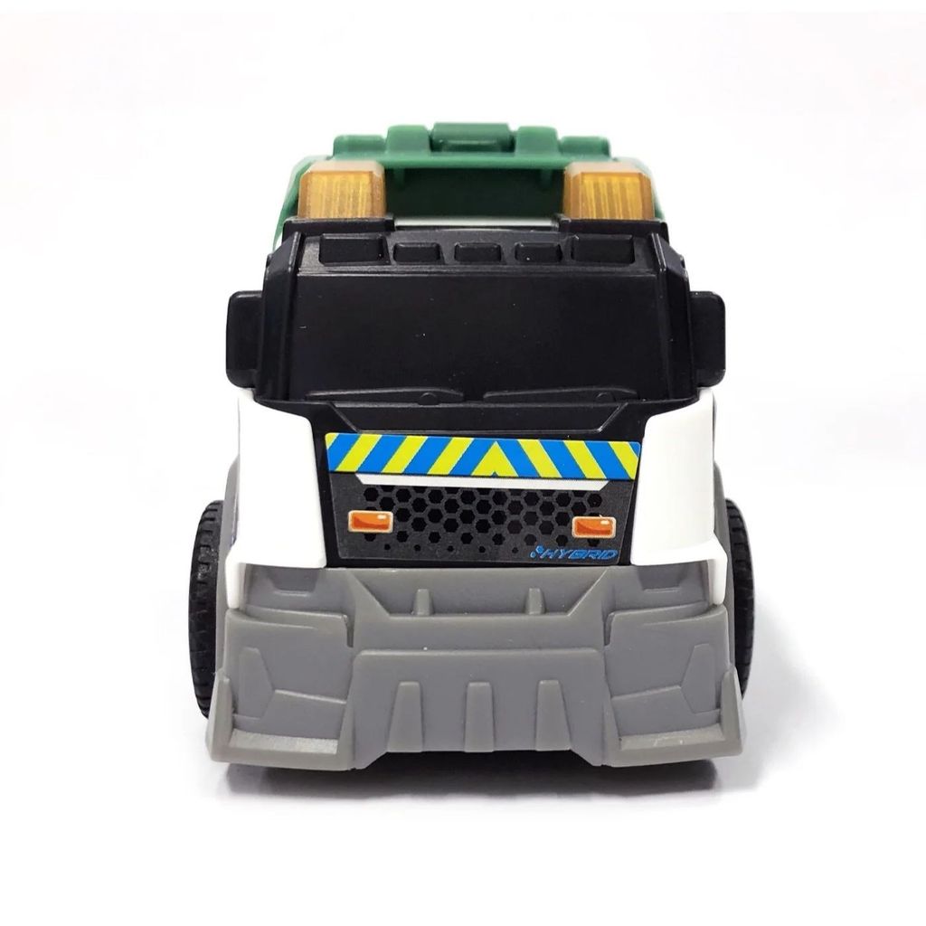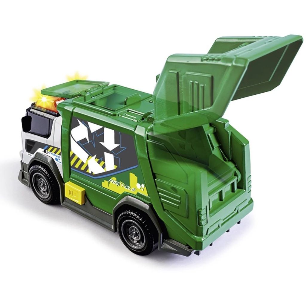Lille skraldebil med lyd og lys fra Dickie Toys. Skraldebilen er 15 cm lang og har en del, der kan åbnes bagpå.