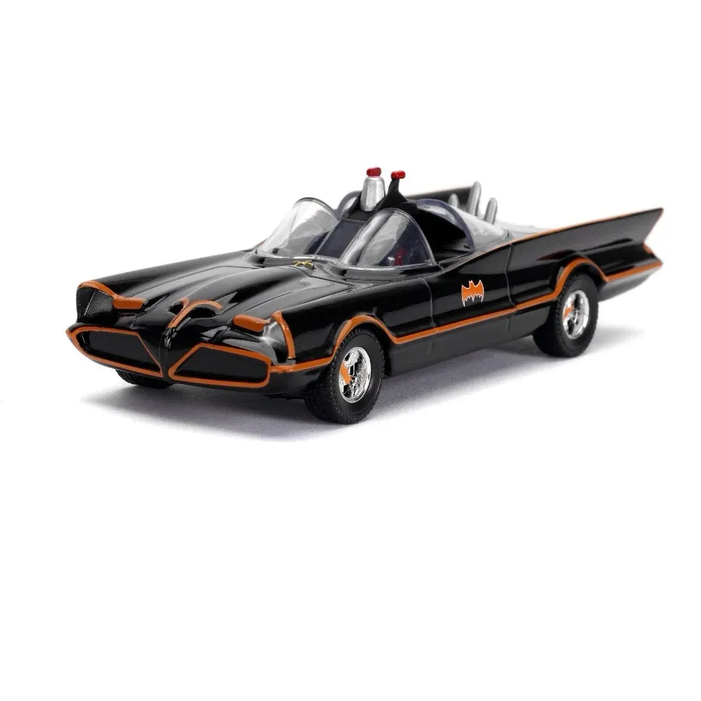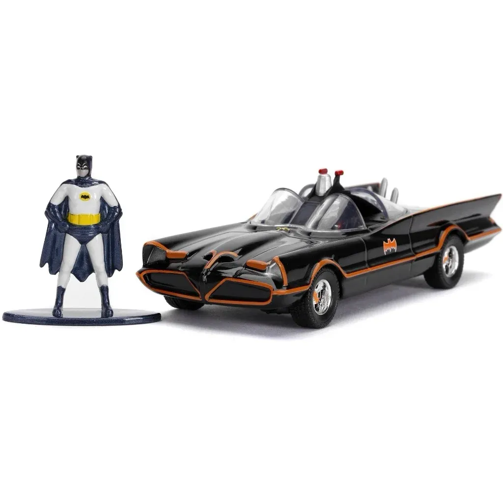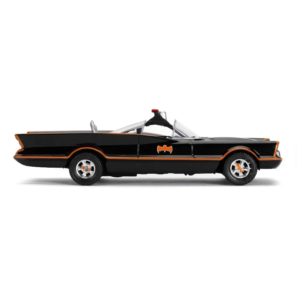 Batman og Batmobil vintage 1966 som legetøj og model fra Jada. Skalaen er 1:32, hvilket betyder, at denne Batmobil er 13 cm lang.