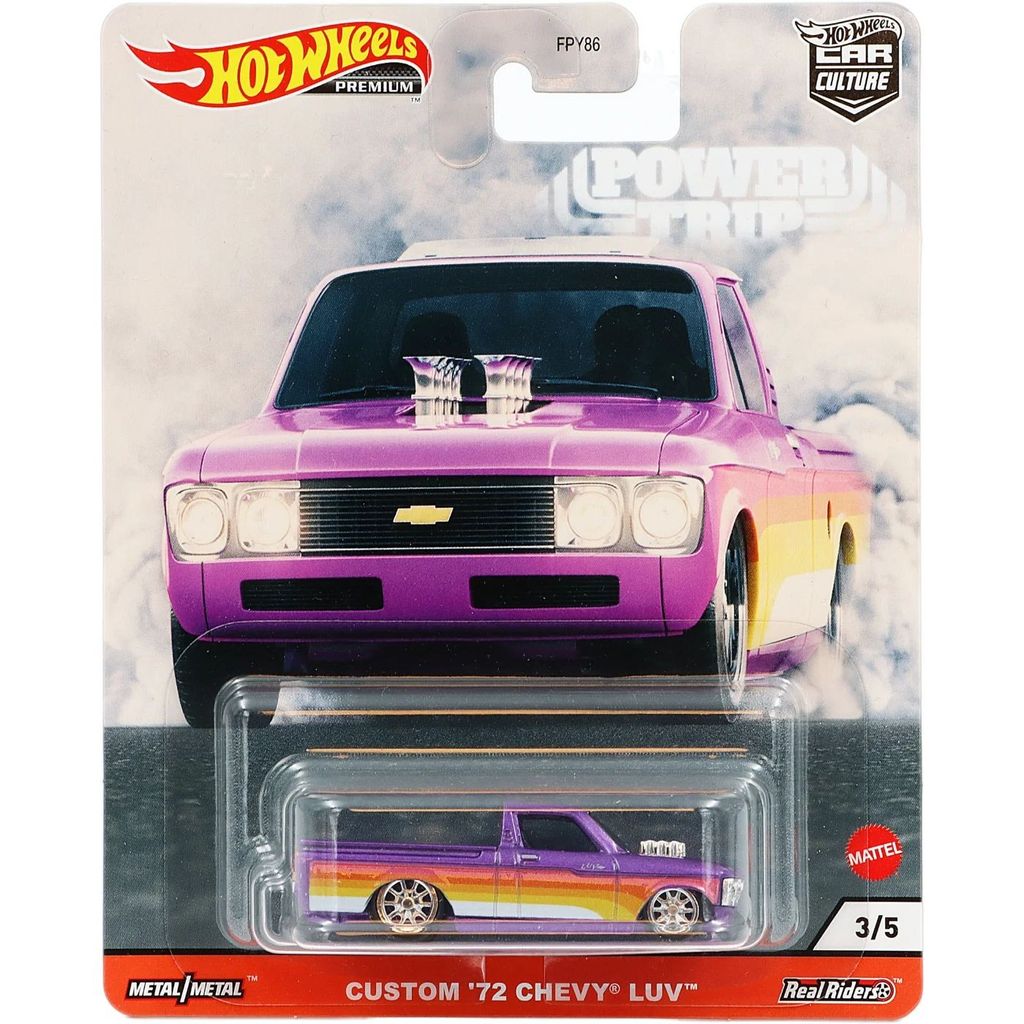 Lilla Custom ’72 Chevy Luv fra Hot Wheels. Bilen er en del af sættet Car Culture: Power Trip fra 2020, hvor denne Chevrolet er bil nummer 3 ud af 5.
