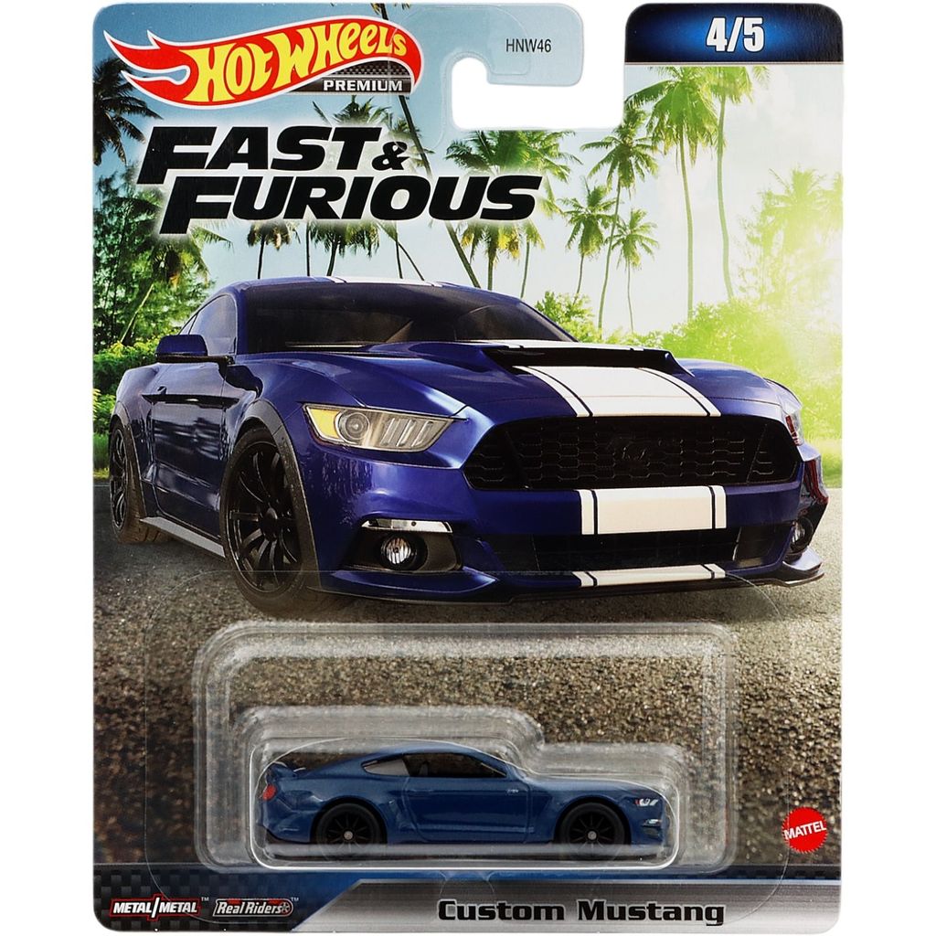 Custom Mustang (Ford) fra Hot Wheels og sættet Fast & Furious (Mix 3) fra 2023, hvor denne Ford er bil nummer 4 ud af 5 i sættet.