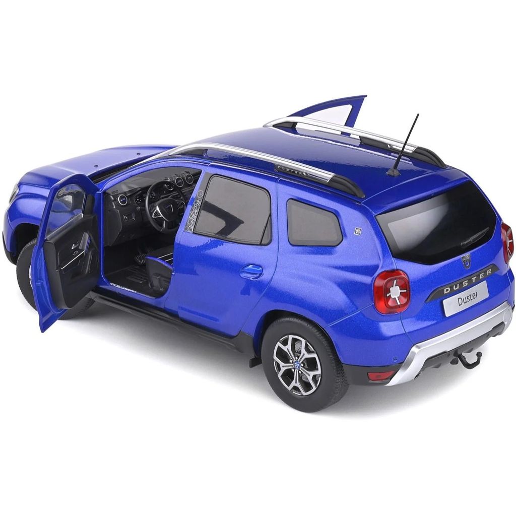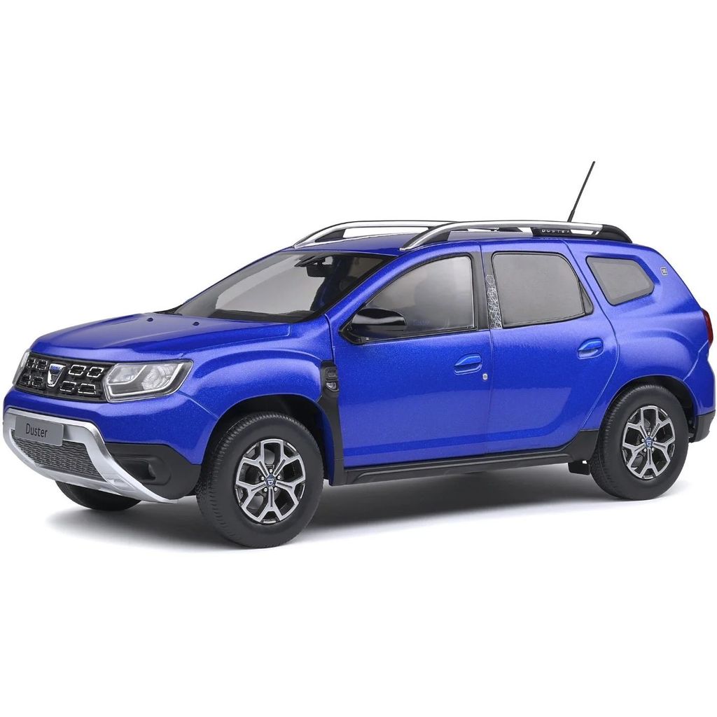 Modelbil fra Solido, modelleret efter en blå Dacia Duster. Skalaen er 1:18.