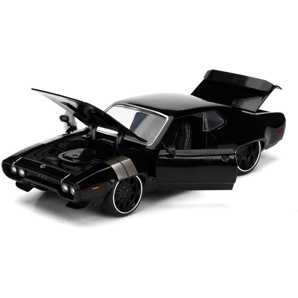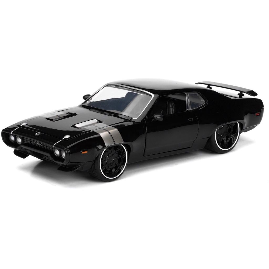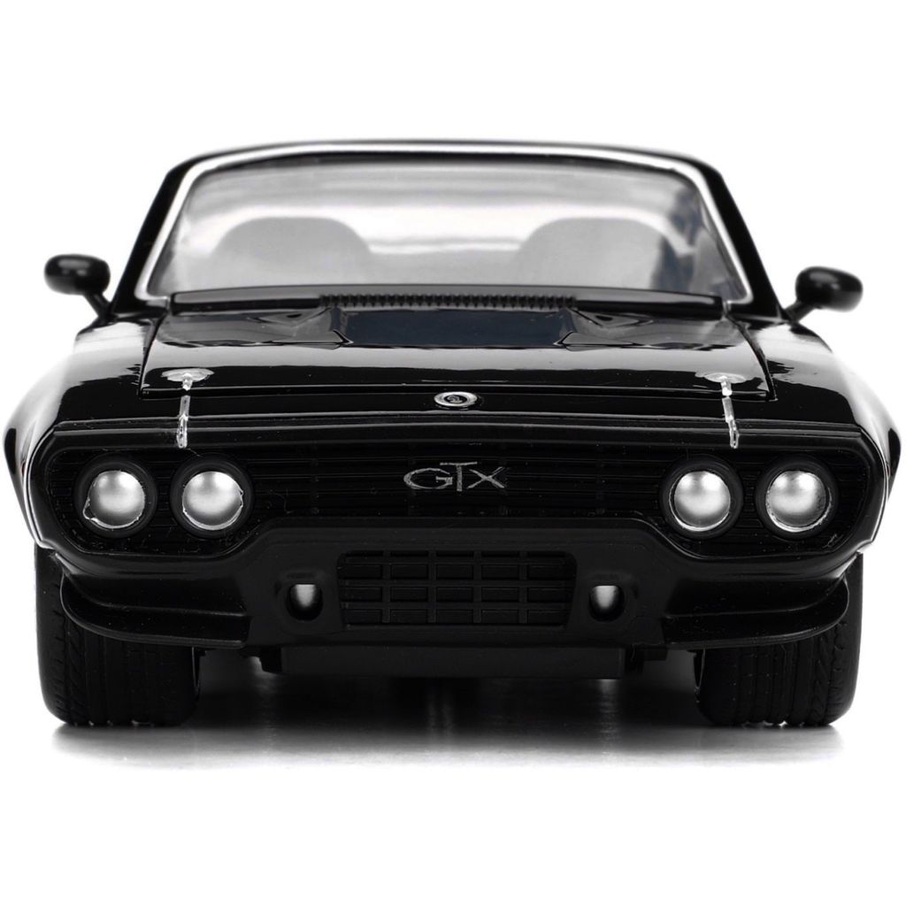 Dom's sorte Plymouth GTX, modelår 1971, kendt fra The Fate of the Furious (Fast 8). Bilen er 22 cm lang (skala 1:24).