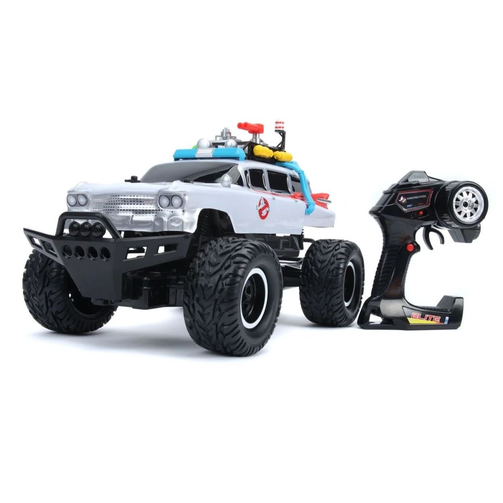 ECTO-1-bilen (1984 Cadillac) som en radiostyret bil fra Jada Toys. Den radiostyrede Cadillac er kendt fra Ghostbusters-filmen fra 1984.