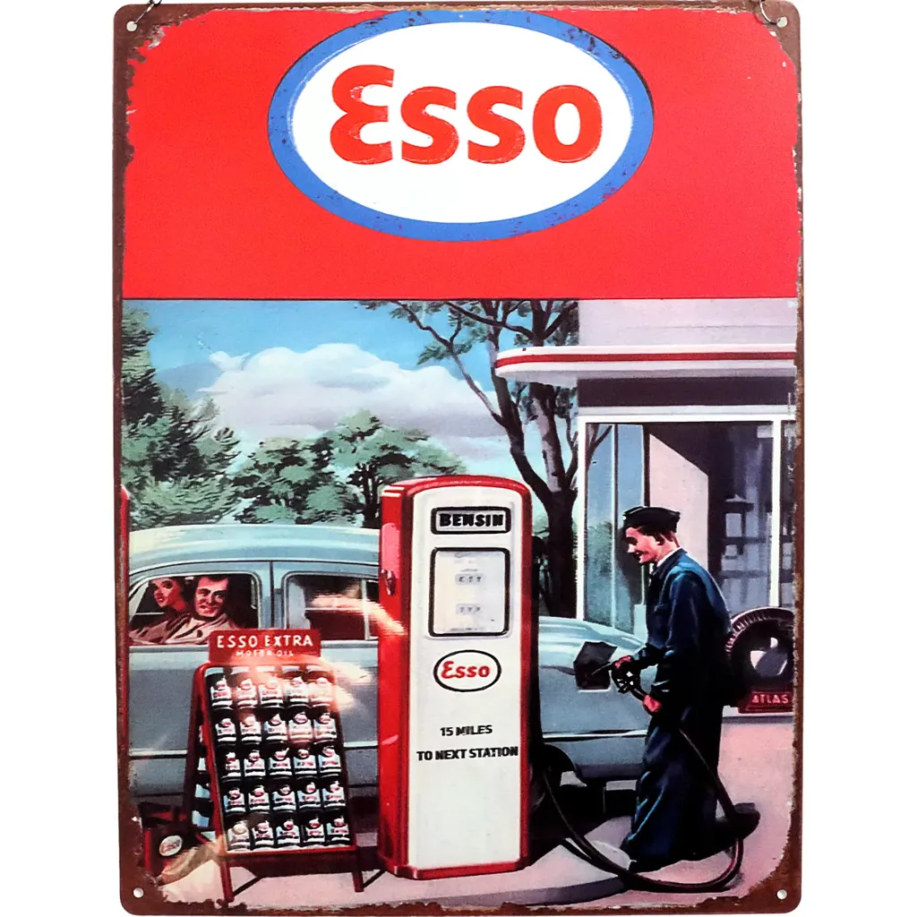 Esso Plåtskylt med Bensinpump - 40 x 30 cm