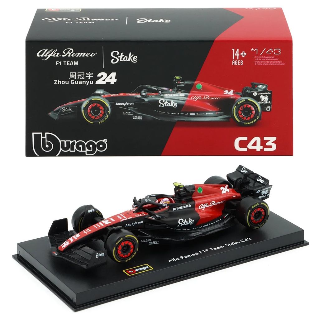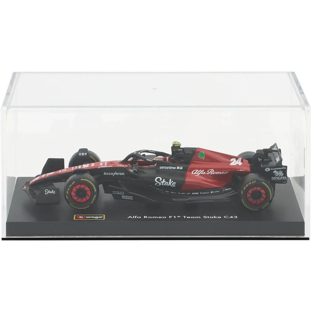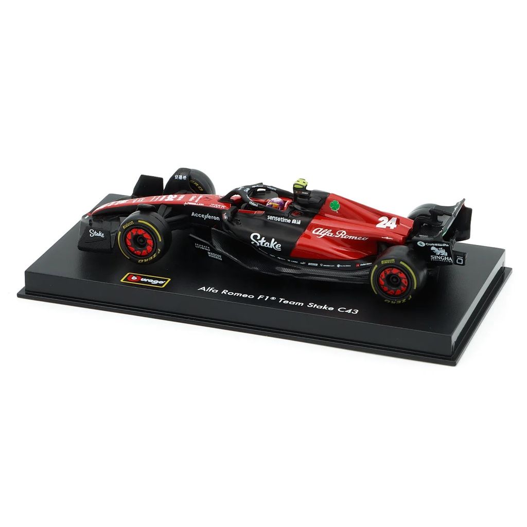 Model af C43 Formel 1-bilen fra Alfa Romeo. Denne bil, nummer 24, blev kørt i 2023-sæsonen af Zhou Guanyu, som sluttede som nummer 18 med 6 point i sæsonen. Bilen er en del af Alfa Romeo F1 Team Stake-teamet fra Hinwil i Schweiz.