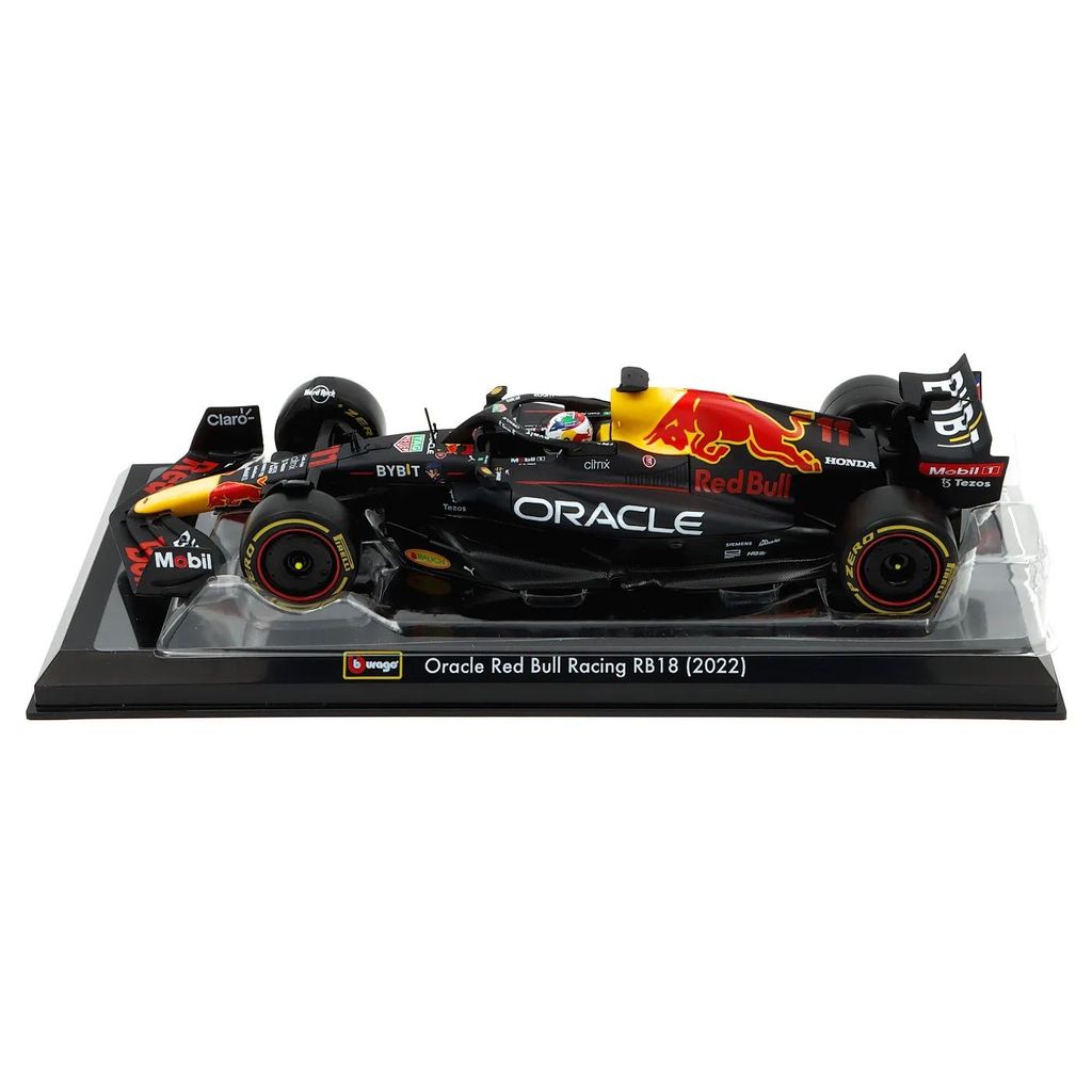 Model af RB18 Formel 1-bilen fra Red Bull. Denne bil, nummer 11, blev i 2022-sæsonen kørt af Sergio Perez, som sluttede på tredjepladsen med 305 point i sæsonen. Bilen er en del af Oracle Red Bull Racing-teamet fra Storbritannien.