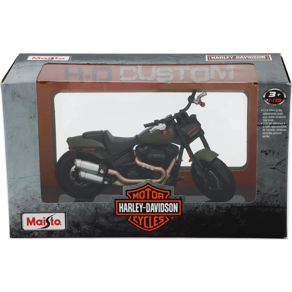 Olivengrøn Harley-Davidson Fat Bob 114 fra producenten Maisto i skala 1:18.
